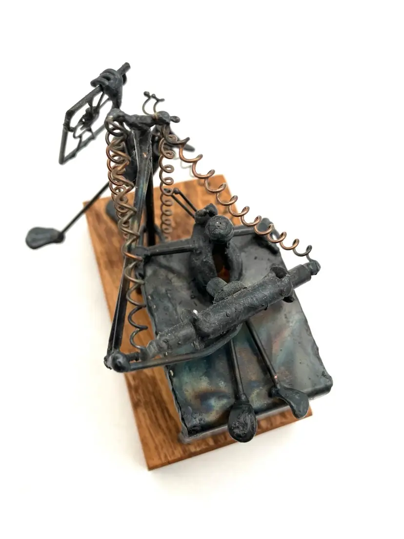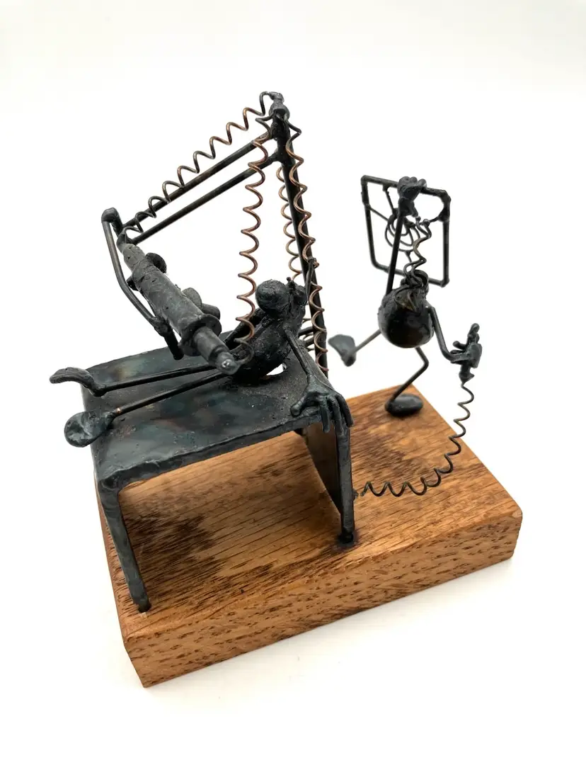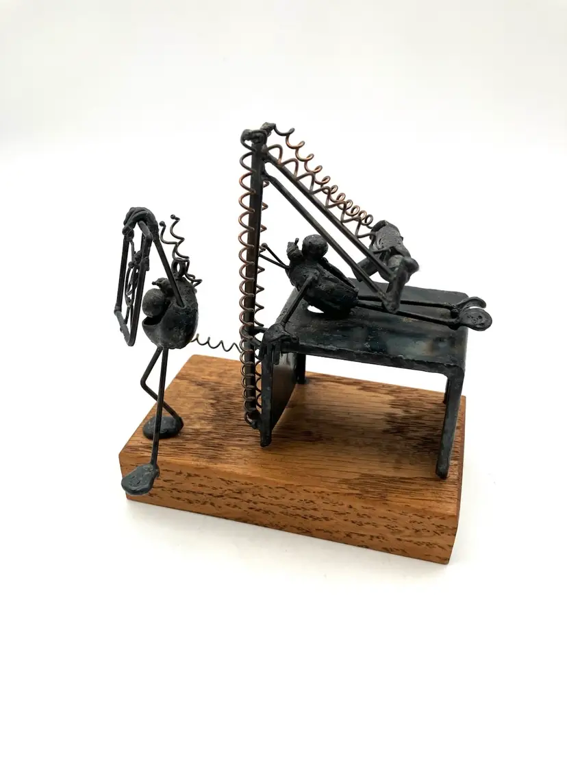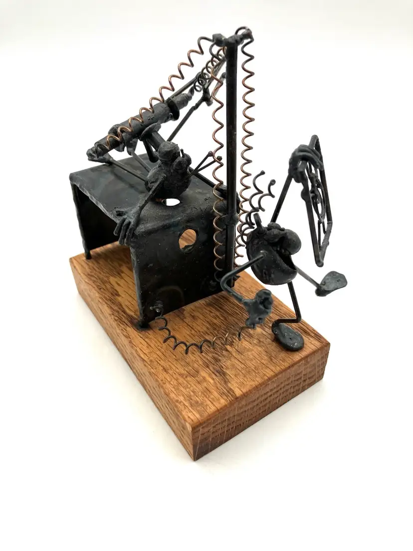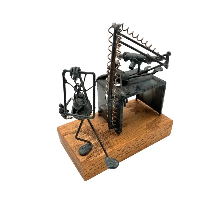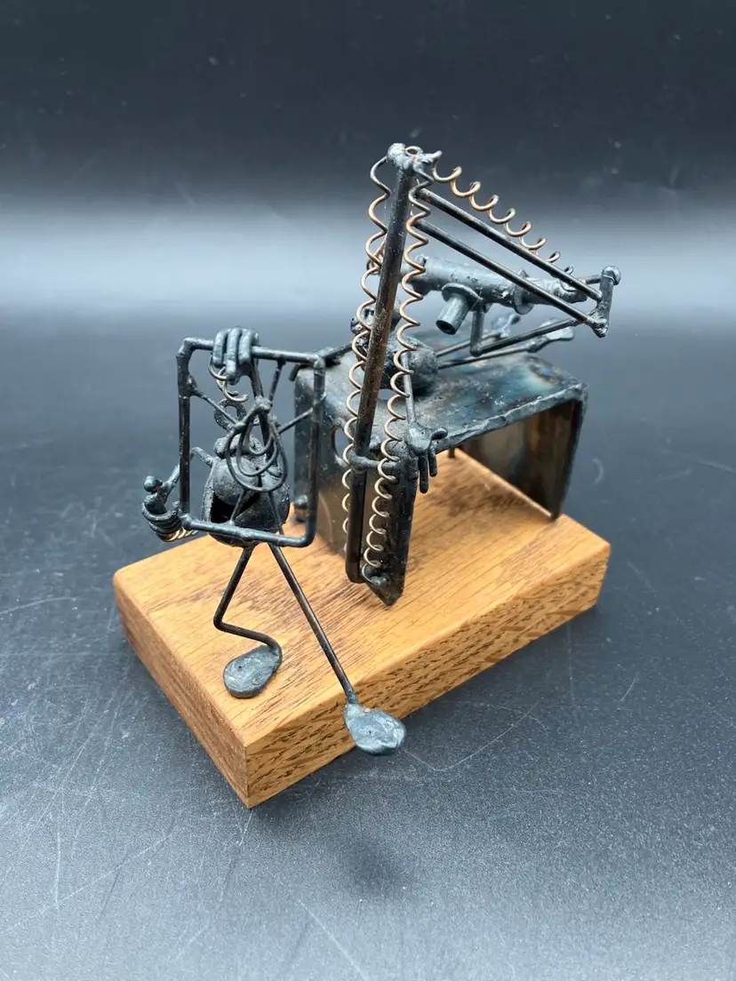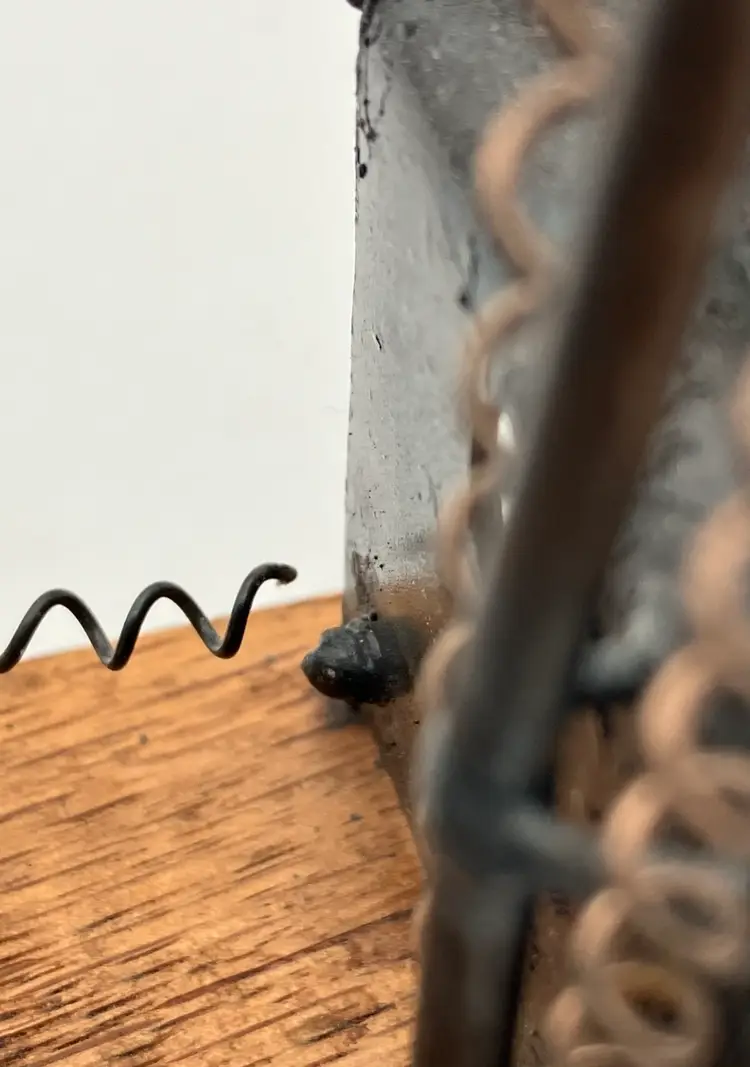 Measures 4” x 3.25” x 4.5”. Great preowned condition. There is actually a spot where one of the wires came loose from the table. Could be reattached or left as is.