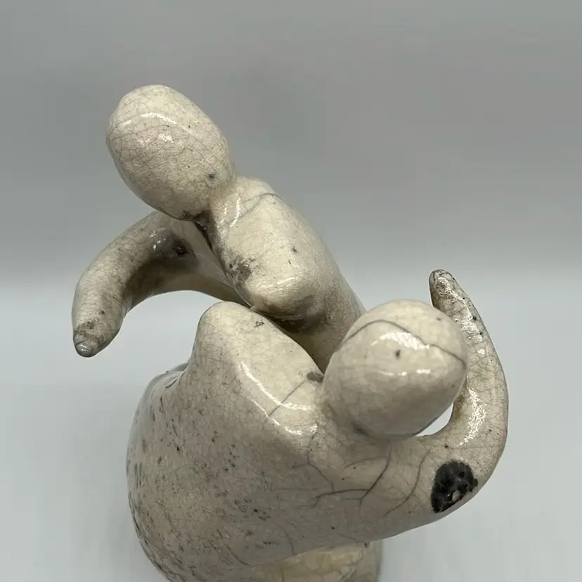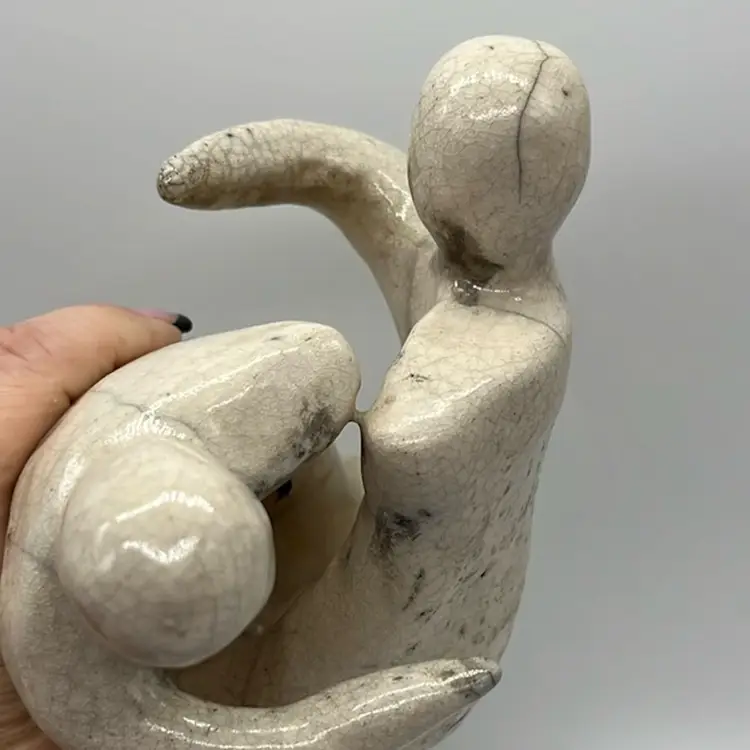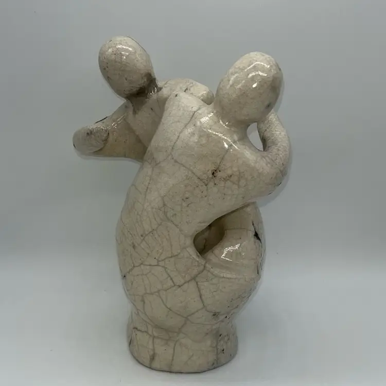 Sculptured Raku Love Art Of Two People Hugging 7.25"