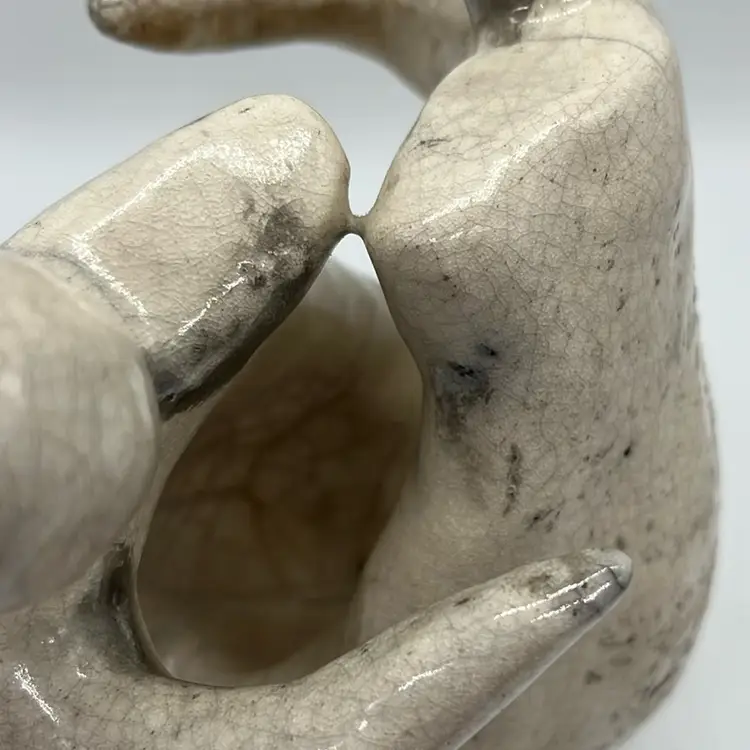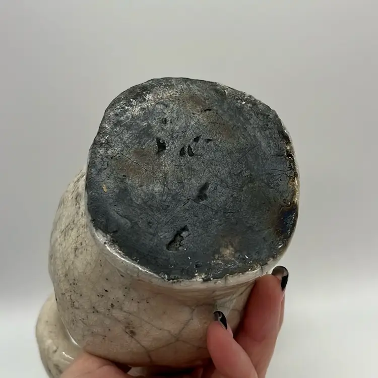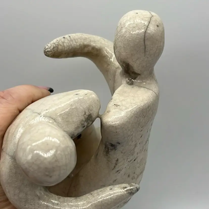 Unique sculpture of Raku. No chips or cracks. This piece is heavy. Unknown Artist. Approx: 4” w x 7.25” h