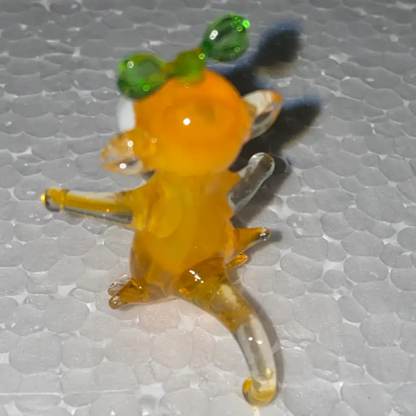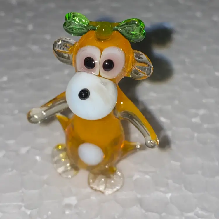 #09- Just In From Ukraine- Hand Blown Glass- Medium Orange Monkey 1.5" Tall