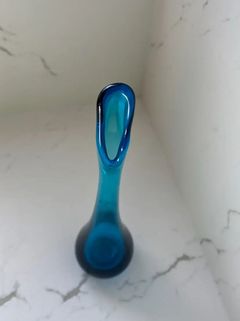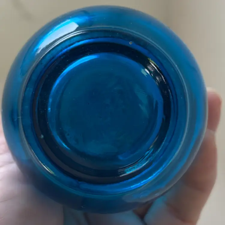 Pretty bluenique like color. No markings on glass. No chips cracks or repairs. A great way to start your swung vase collection.