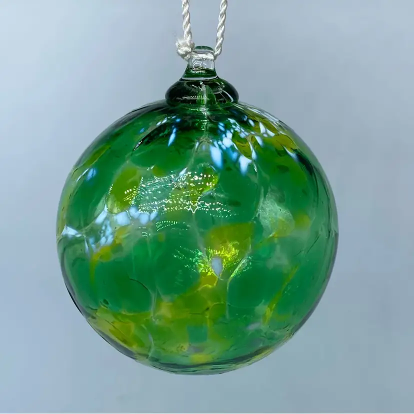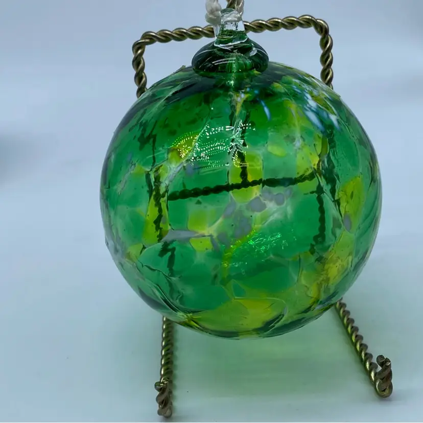 In more modern times, similar glass balls have become popular decorative orbs or as Christmas ornaments. Handblown glass ornaments are valued for their unique patterns and the artisanal skill involved in their creation, making each piece distinct. These ornaments can range from simple, mass-produced items to intricate, collectible works of art. Stand, not included