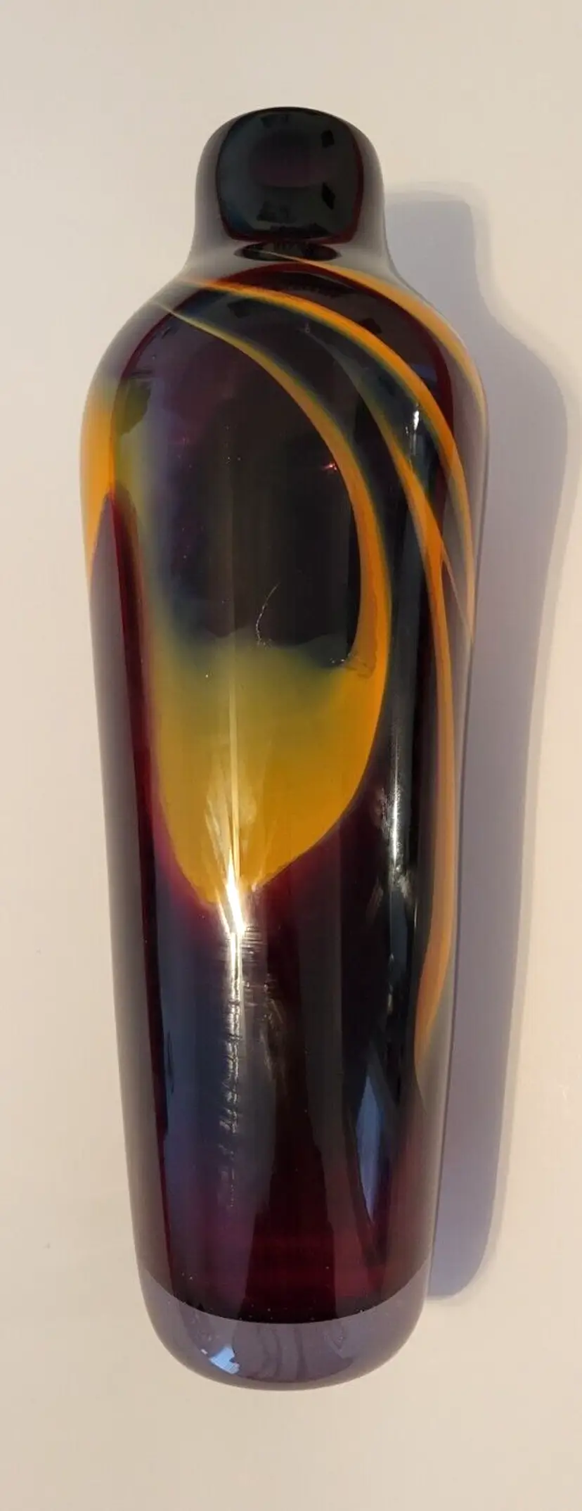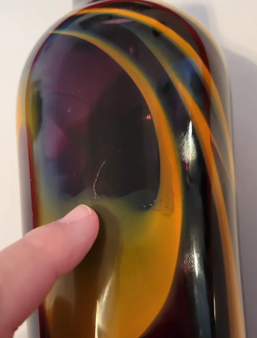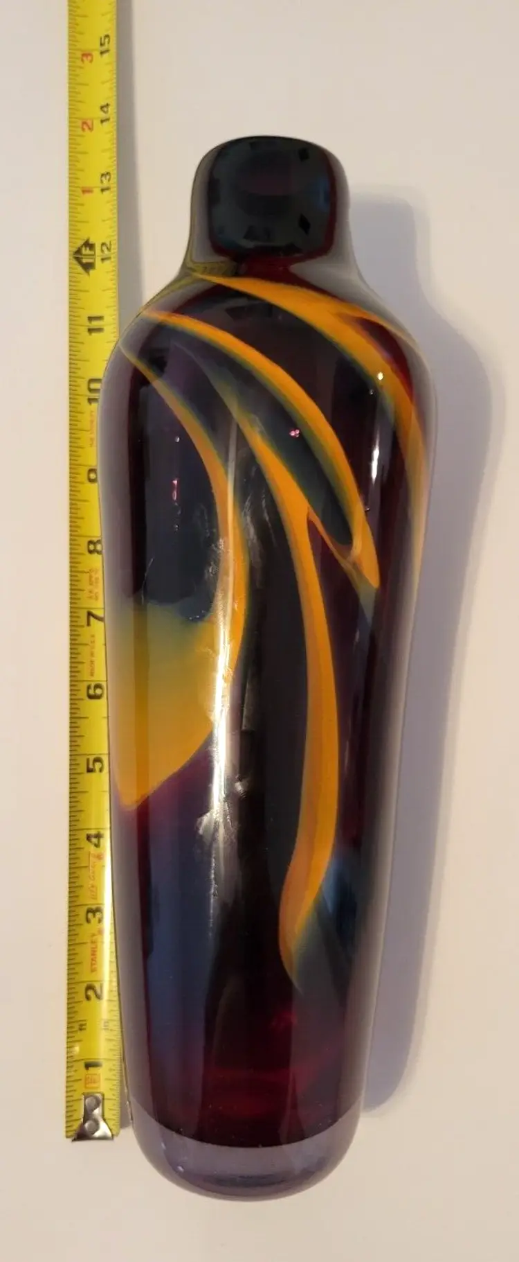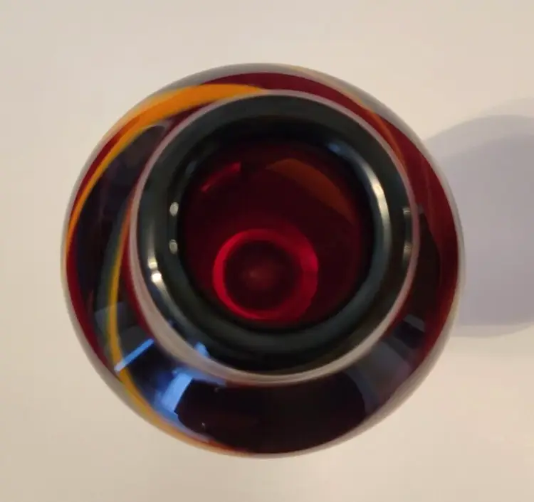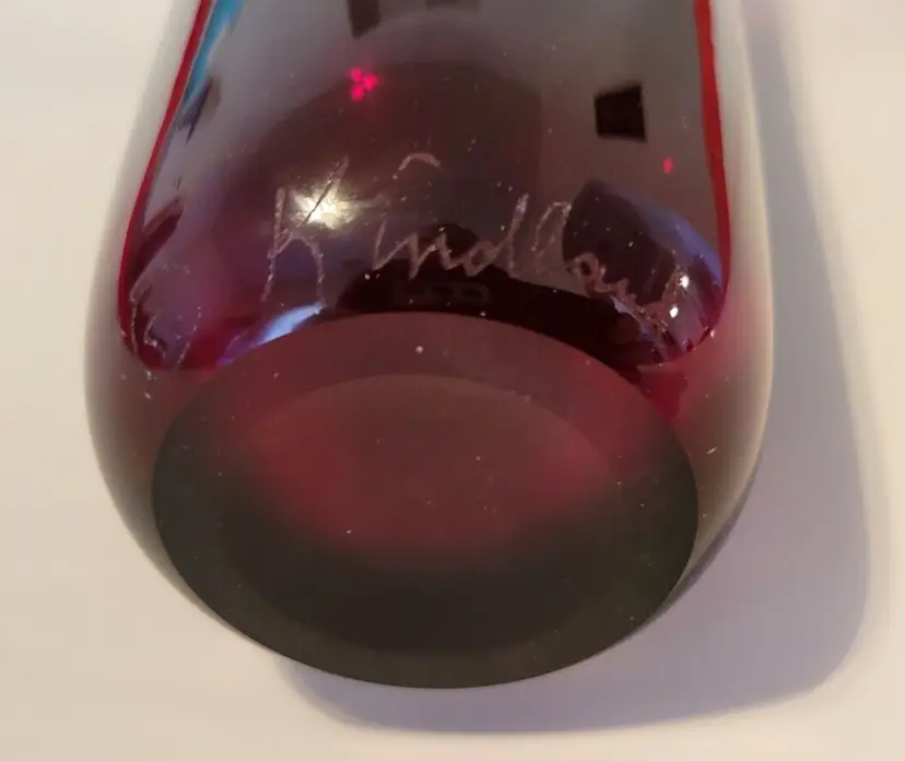 12.5 Inches Hand Blown Glass Vase Signed Suzanne Kindland Icefire Studios - year made is unknown.