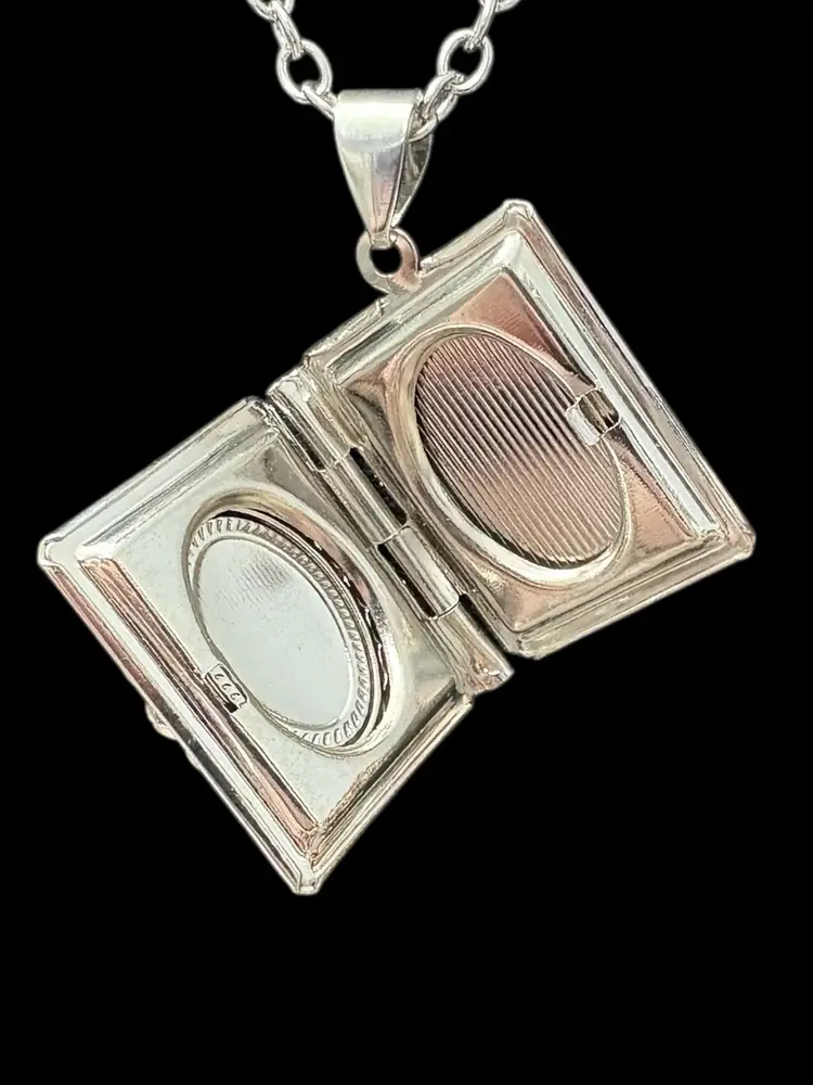 18-20in with pendant included in measurement. Locket on a lobster claw chain.