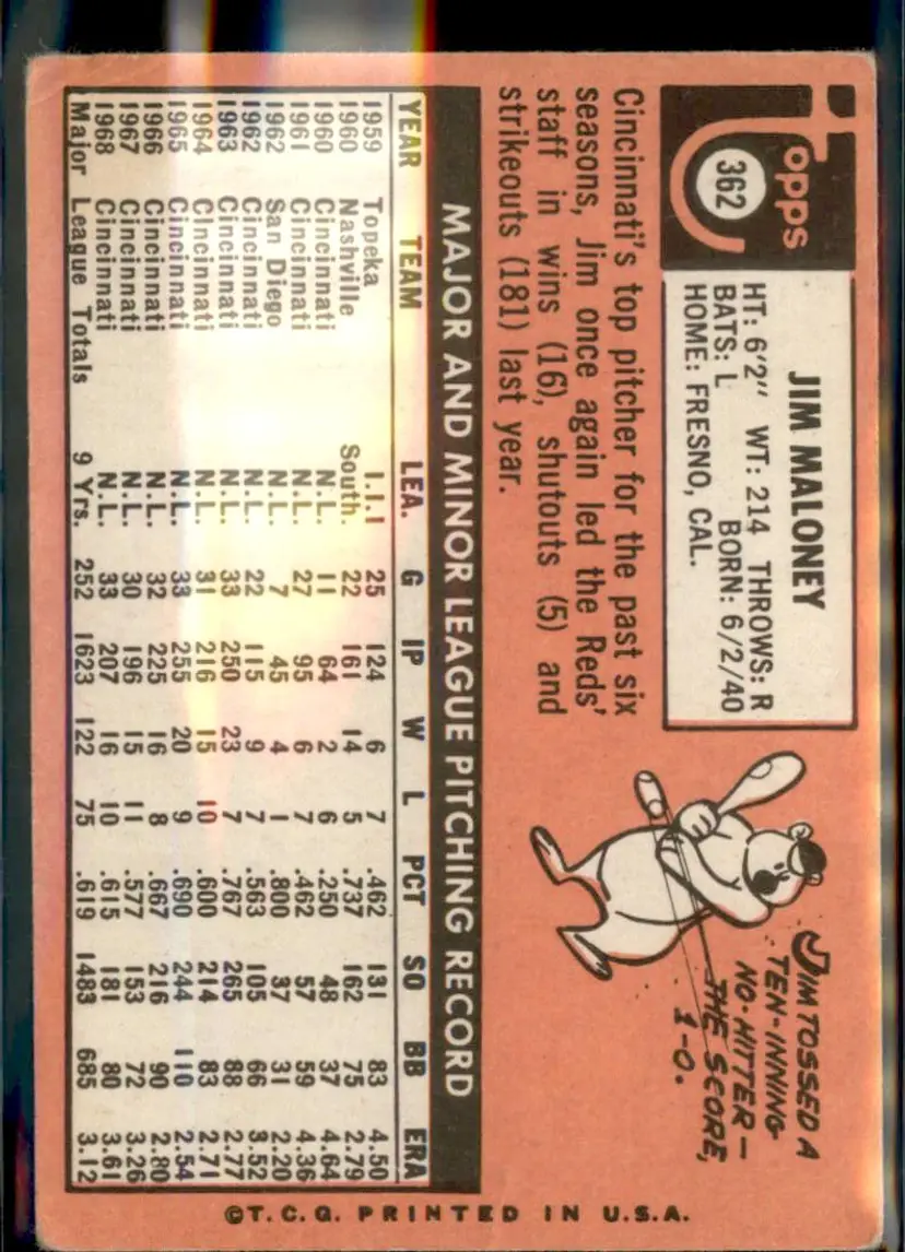 1969 Topps #362 Jim Maloney - (pk3) - Cincinnati Reds