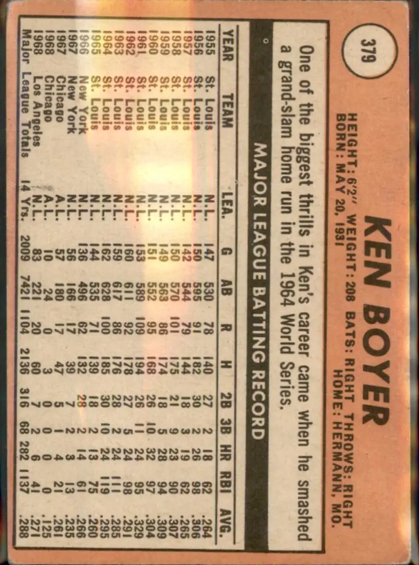 1969 Topps #379 Ken Boyer - (pk3) - Los Angeles Dodgers