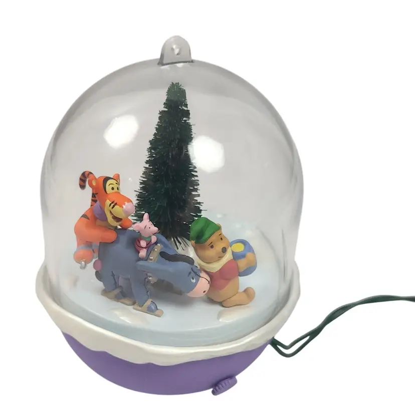 Celebrate the whimsical charm of the Hundred Acre Wood with this delightful Hallmark Keepsake Ornament. Featuring Winnie the Pooh and friends, this 1996 handcrafted collectible showcases playful motion and intricate detail. A festive addition for collectors or fans of timeless Disney classics. Winnie the Pooh,Tigger, Piglet and Eeyore are sliding around on the ice pond enjoying a wintery day. Plug ornament into any light bulb socket on a standard (Not LED or Blinking) miniature tree light system. To start motion, turn switch. To stop motion, turn switch again.