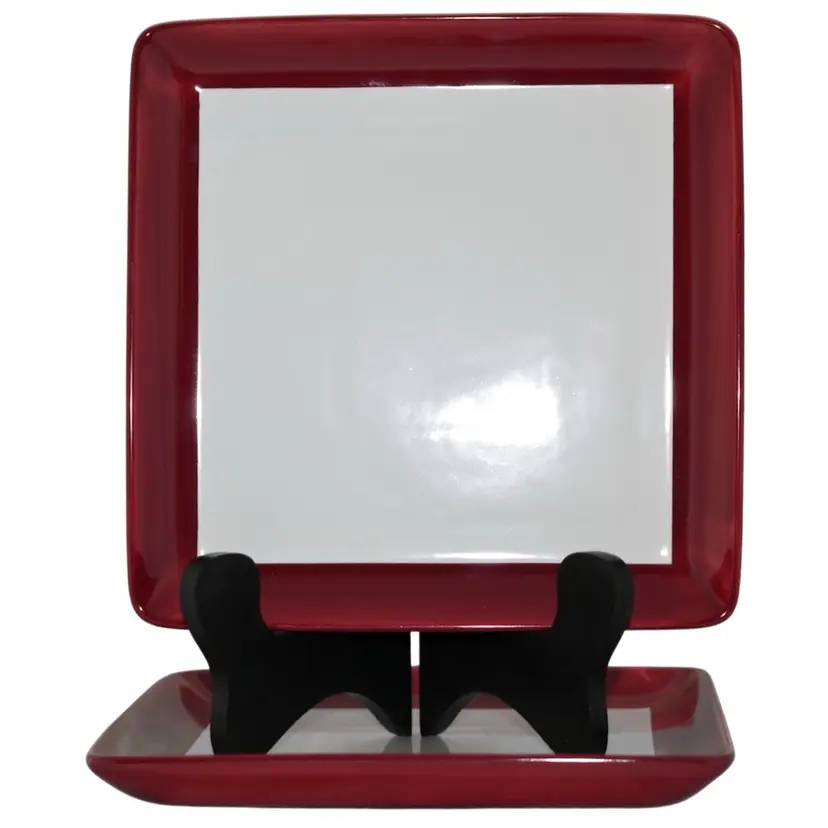 👉 10”x1” Square “Simple Editions” Collection 👉 Cranberry Trim White Center 👉No Chips or Cracks 👉 Review Photos for Best Condition Description 👉 Sold as Shown