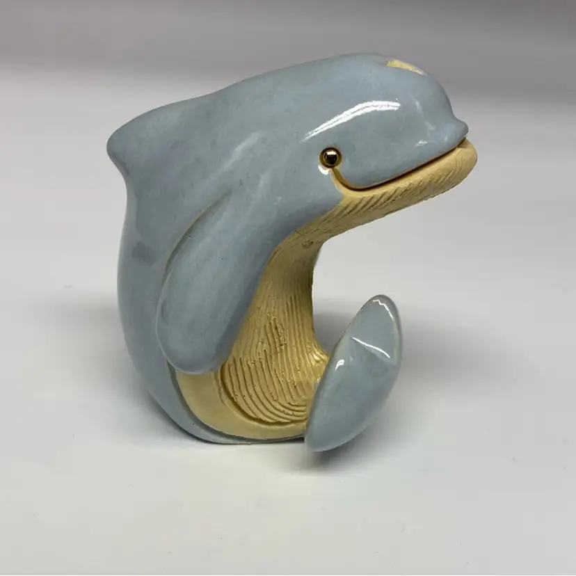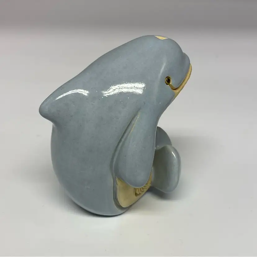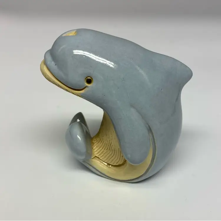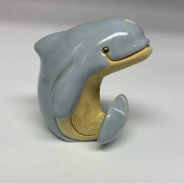 These charming dolphin figurines, like many other Rinconada creations, embody the brand's commitment to capturing the essence of wildlife with a whimsical and endearing touch. The distinctive combination of glazed exteriors and textured interiors, often in contrasting colors, is a hallmark of their design. The playful poses and expressive features of the dolphins reflect the artistry and passion that goes into every piece, making them popular decorative items and collectibles.