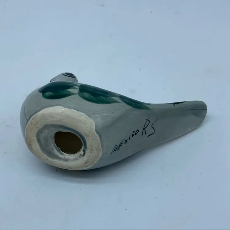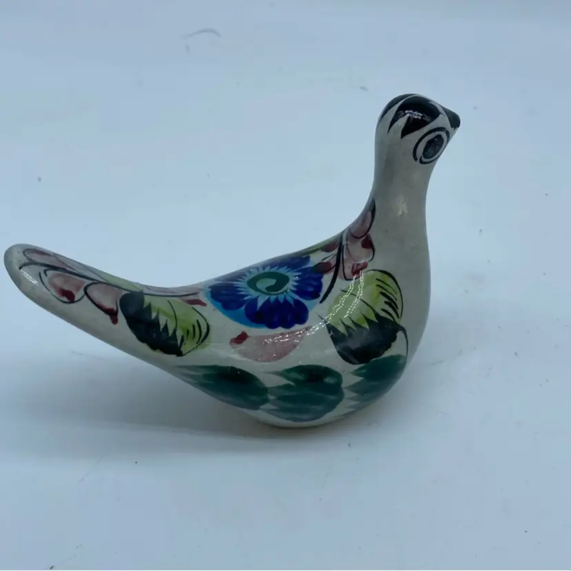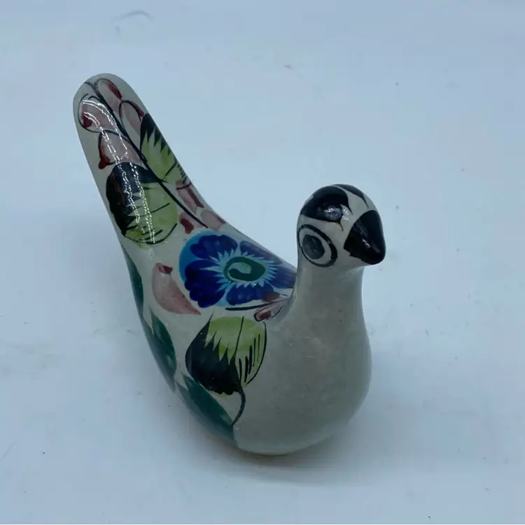 This particular piece, a ceramic bird, exemplifies the folk art aesthetic of Tonalá. Such figurines are popular as decorative items and souvenirs, reflecting the rich cultural heritage and artistic talent of Mexican craftspeople. The use of bright, contrasting colors and the stylized depiction of nature are hallmarks of this style, making each piece a unique expression of traditional artistry.