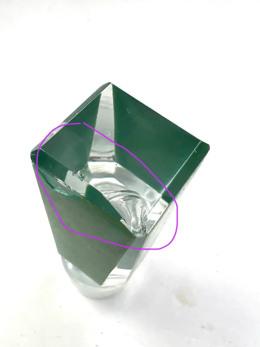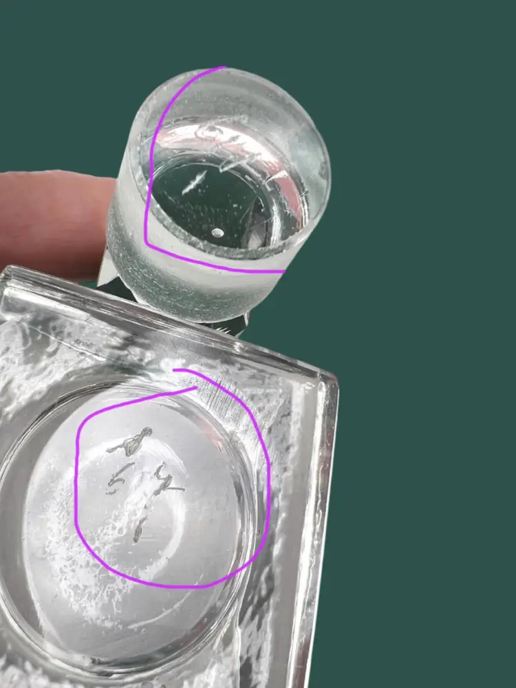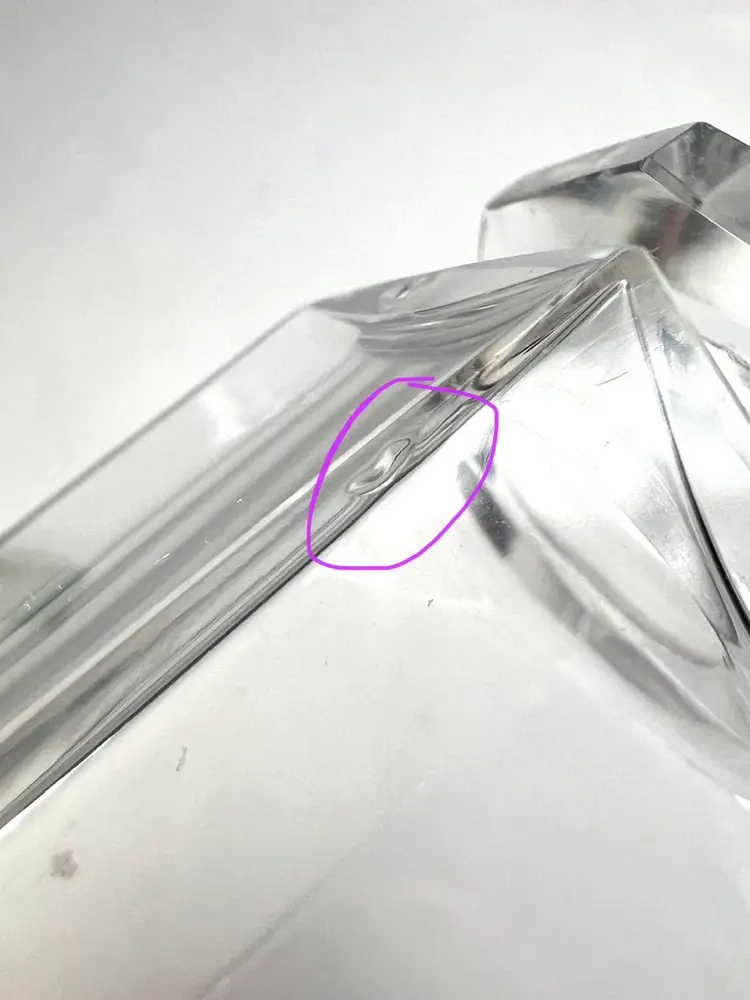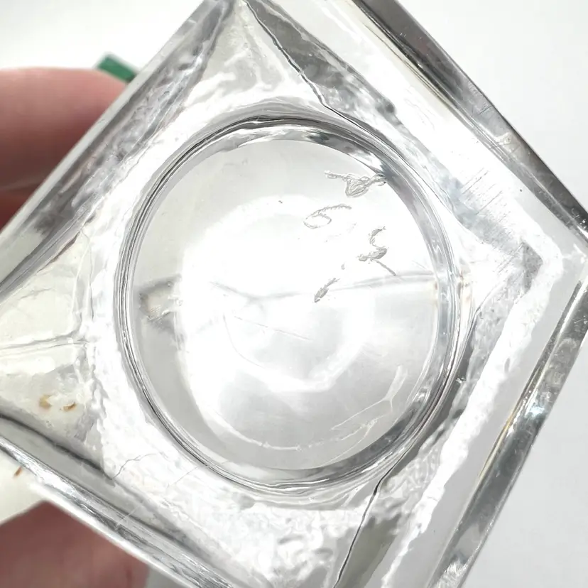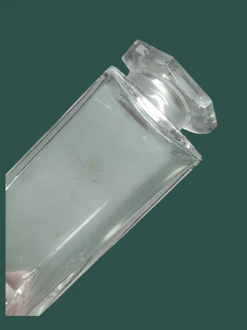 🚨Collector alert‼️ 6” Vintage c.mid-1920s French Crystal Art Deco Perfume Bottle from the House of Caron, Paris It housed their fragrance "Le Pois de Senteur de Chez Moi". Square Cut Bottle with Stopper Matching Etched Alphanumeric Code on Stopper & Bottle Bottom- A Hallmark For Baccarat Perfume Bottles Beautifully cut with a footed bottom Glows green under 365nm blacklight 5-3/4” H x 1-3/8” W x 1-3/8D Stopper 2” L Weighs 6 ounces Condition: Chip on stopper & bottle shown circled in photos. Minor scratches. Looks like a yellow area on side where a label was placed a long time ago.