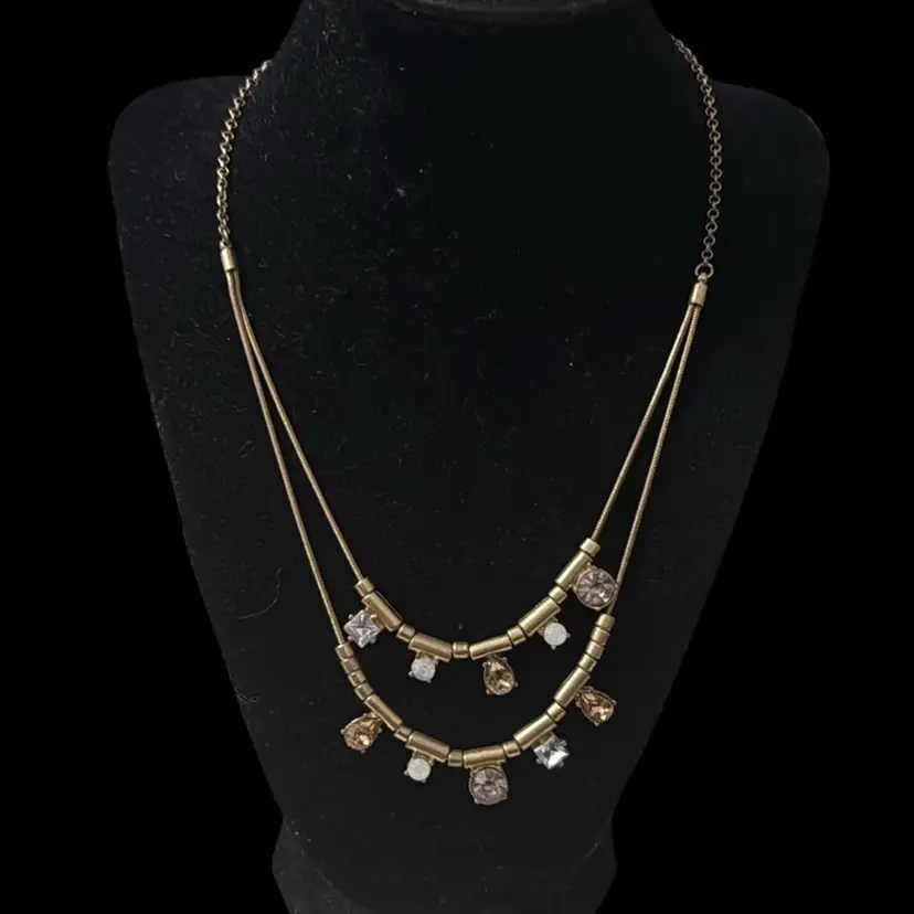 Ann Taylor LOFT Women's Modern Opal Smoke Geo Gemstone Tiered Necklace