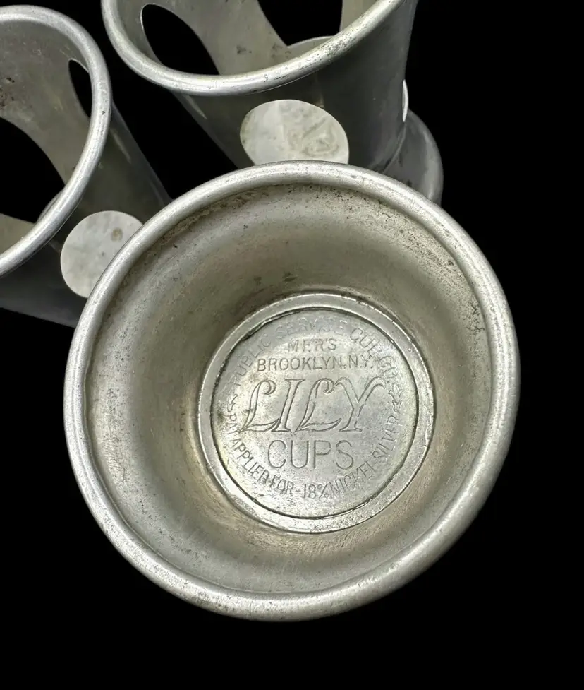 Antique LILY Ice Cream Cup Holders ~1914 Brooklyn NY - Set Of 3 Nickel Silver