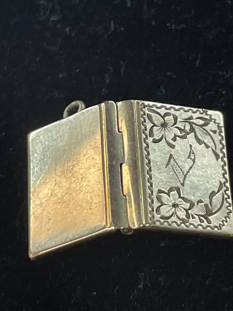 Initial V on front space for 2 photo’s could possibly be Sterling, gold or brass.