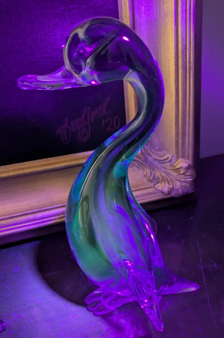 Stunning Seguso Murano duck, photos do not do him justice, flawless no chips or cracks, Mid Century Modern, sommerso Blue Green Colorway, adorable face and feet. Stands appropriately 8.1/2" tall