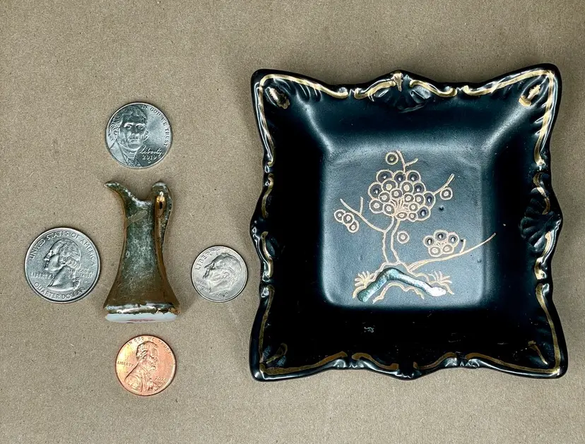 Ardalt 7467 Trinket Tray Gold Painted Miniature Ceramic Pitcher/Creamer Stamped Red Japan