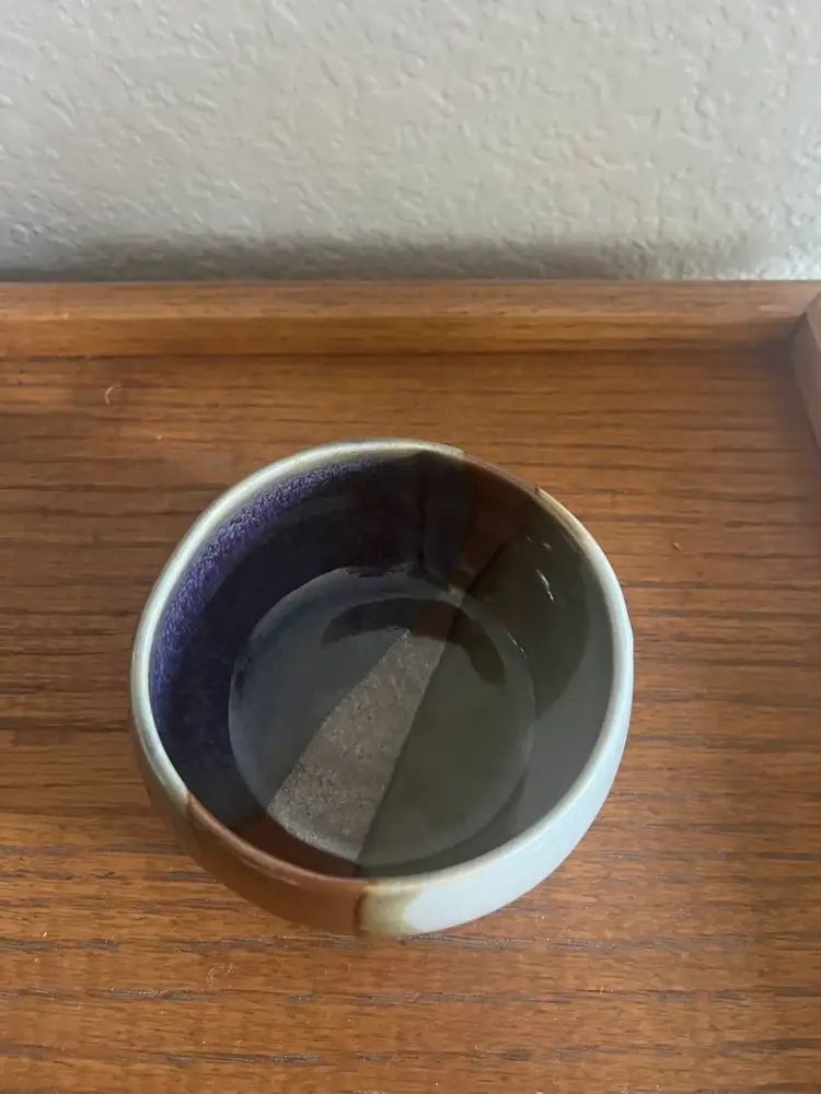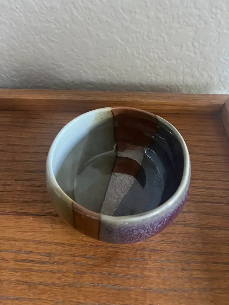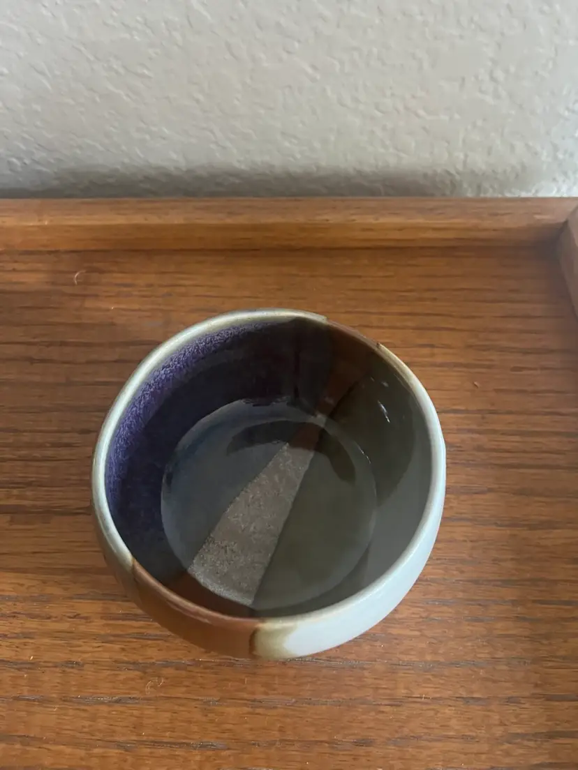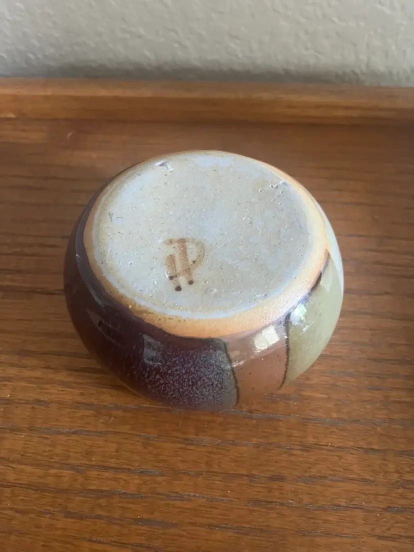 Beautifully glazed artist signed ceramic bowl. No chips or cracks 2 1/4” height 4” across top