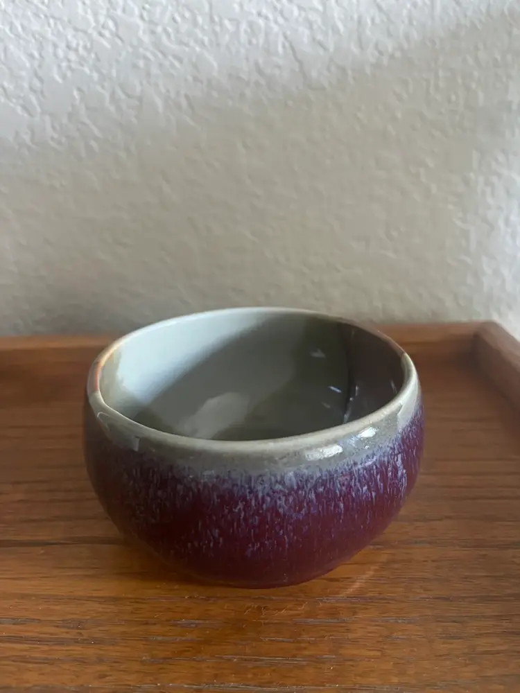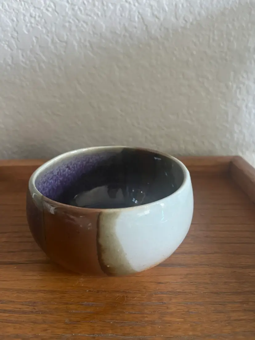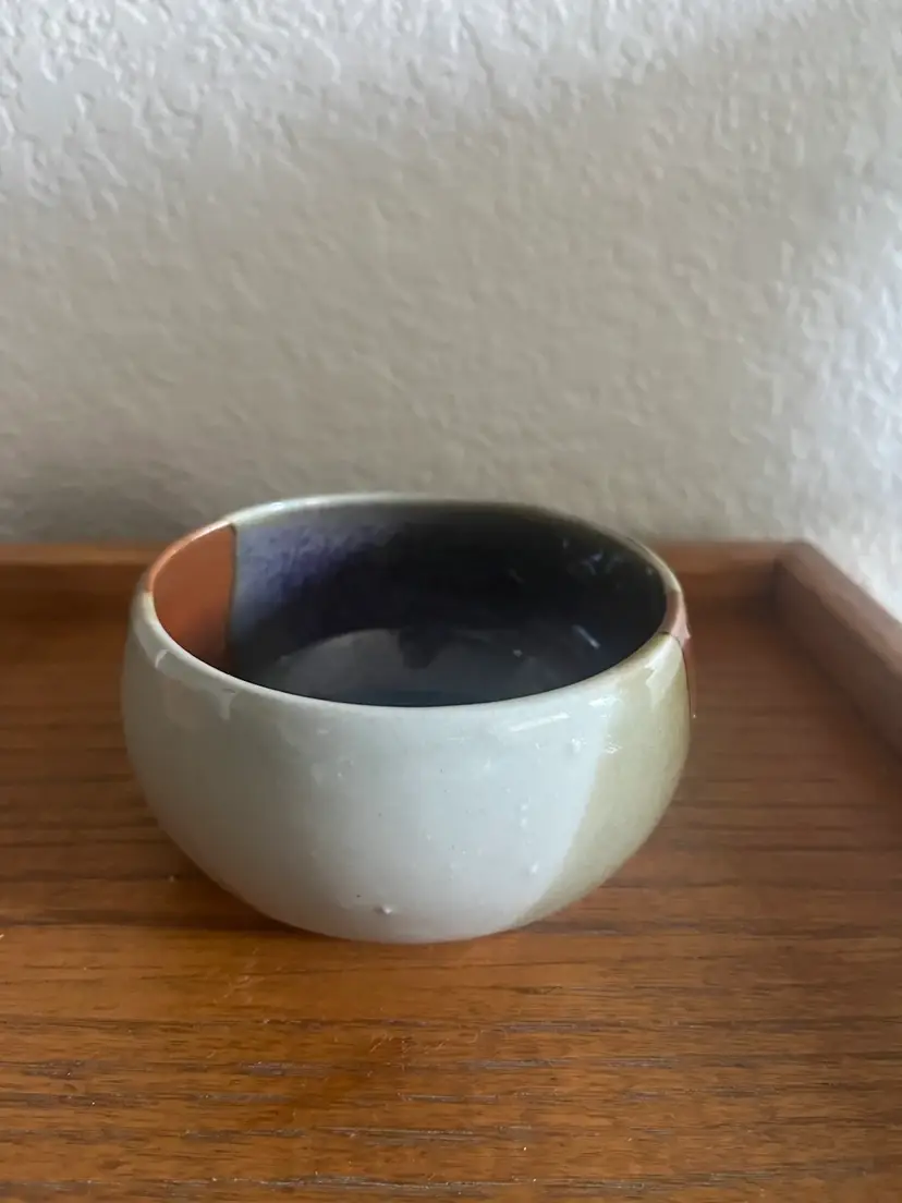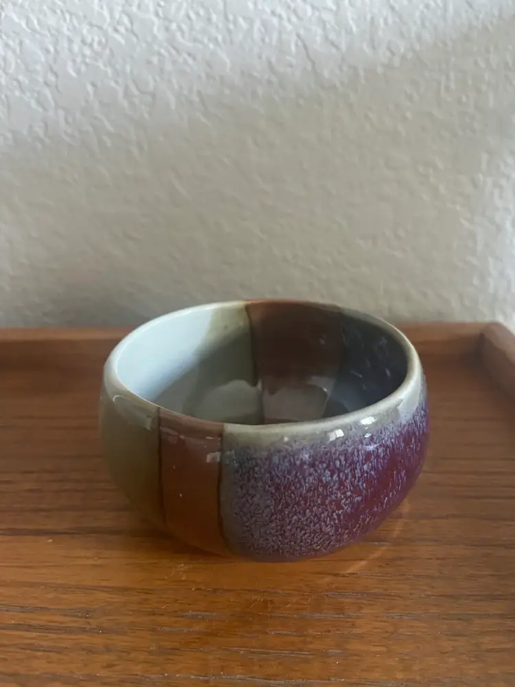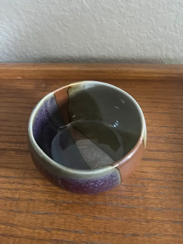 Beautifully glazed artist signed ceramic bowl. No chips or cracks 2 1/4” height 4” across top