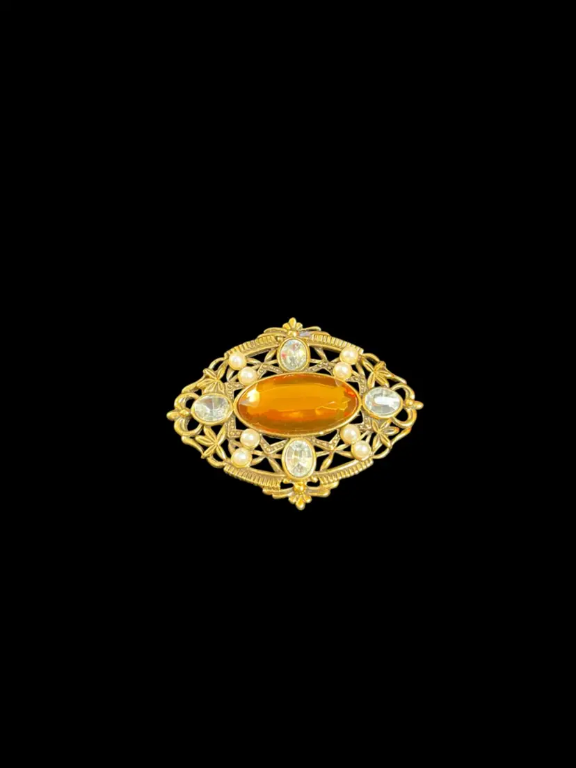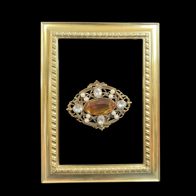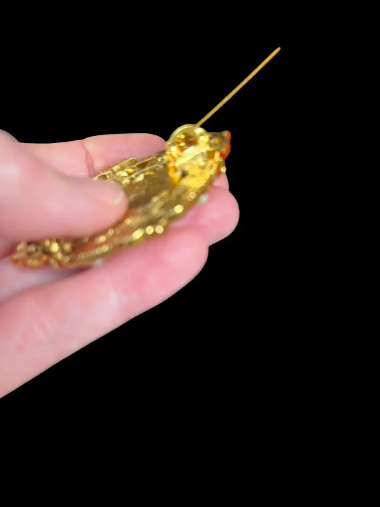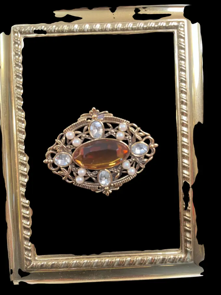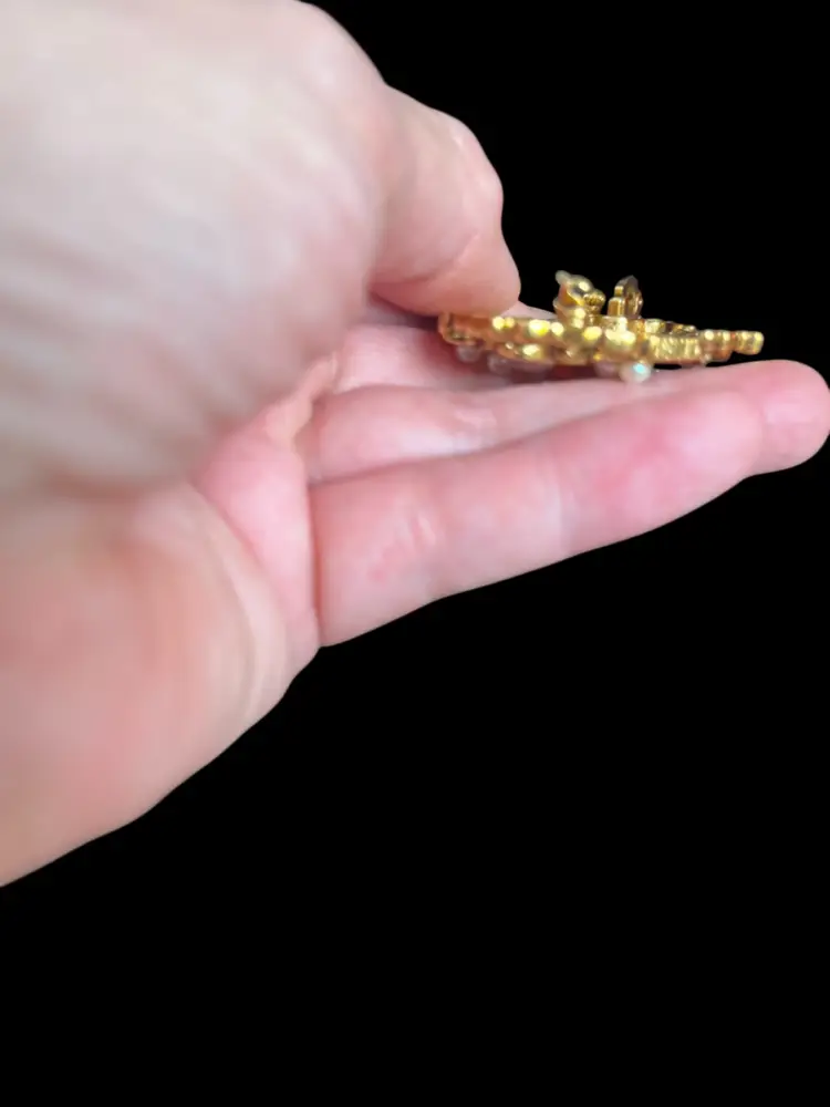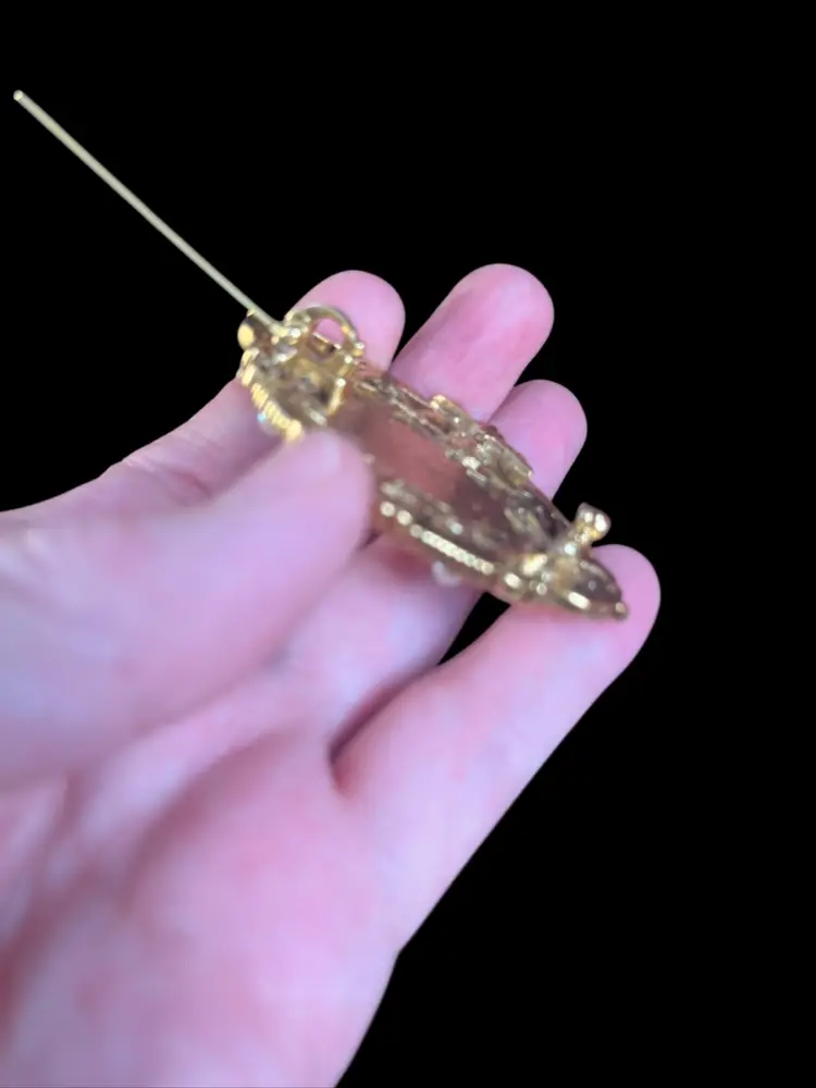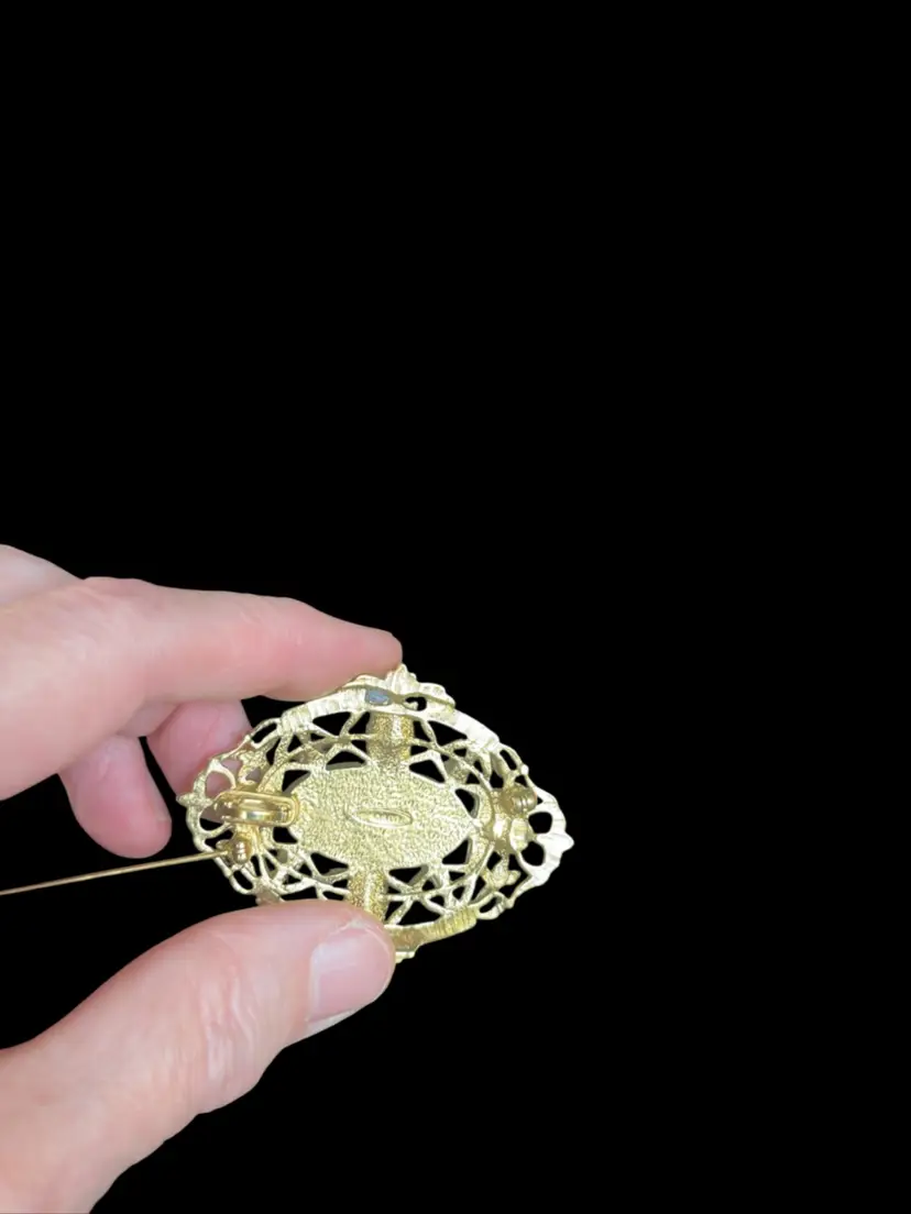 Possibly produced in 1995. UV Glows. The pendant clip is SECURE-you will not loose this off of a chain. Clasp is secure. No patina. It is in beautiful vintage condition. One of Avon's more stellar brooches. Measures approx 2.25"W, 2"Deep