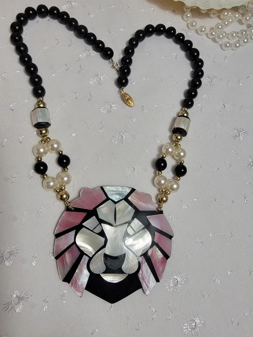 Necklace length is at 16" And lion head is 3" In excellent condition