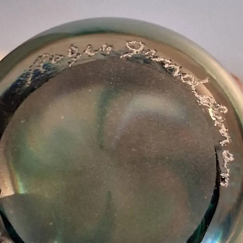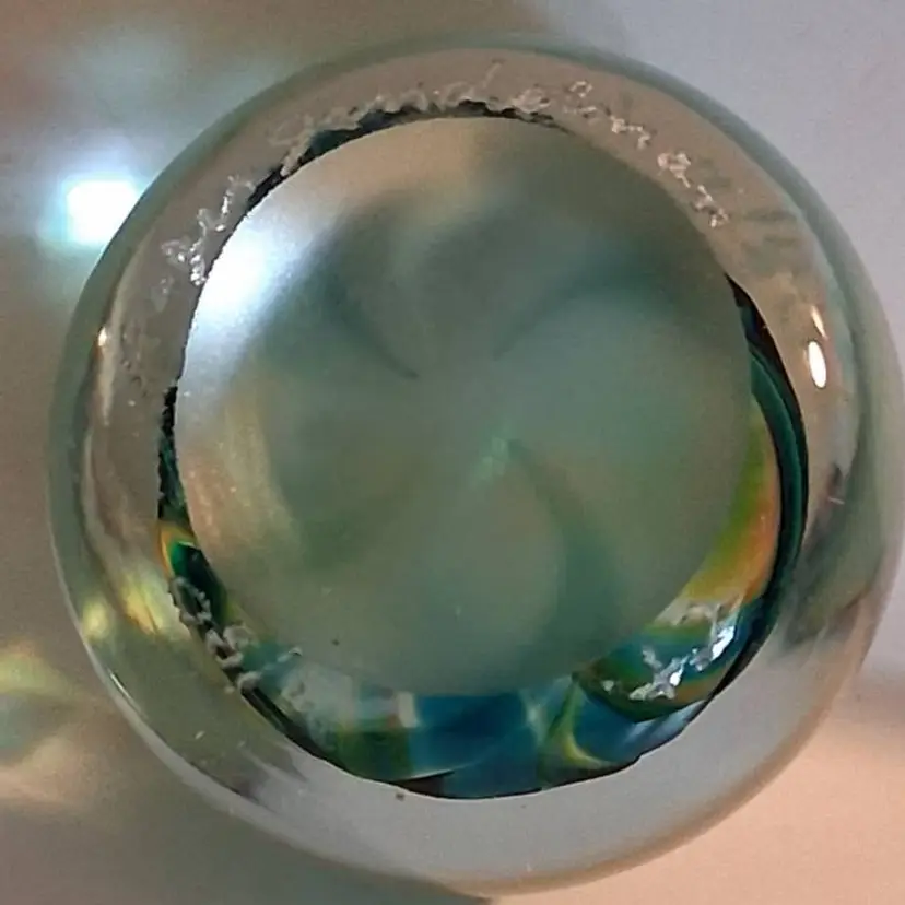 2.5" dia. & 2.25" high. Signed and dated. Great cond!!