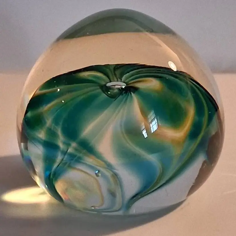 Beautiful Vintage Roger Gandelman Controlled Bubble Flower, Domed Paperweight, Signed & Dated 7/80