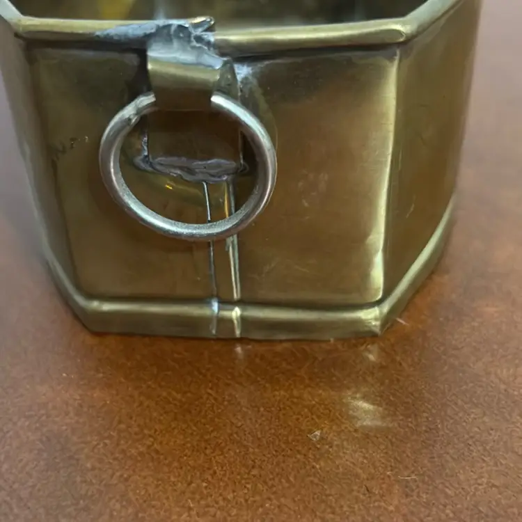 Small brass trinket box for jewelry, coins or keys. Small handles on side.