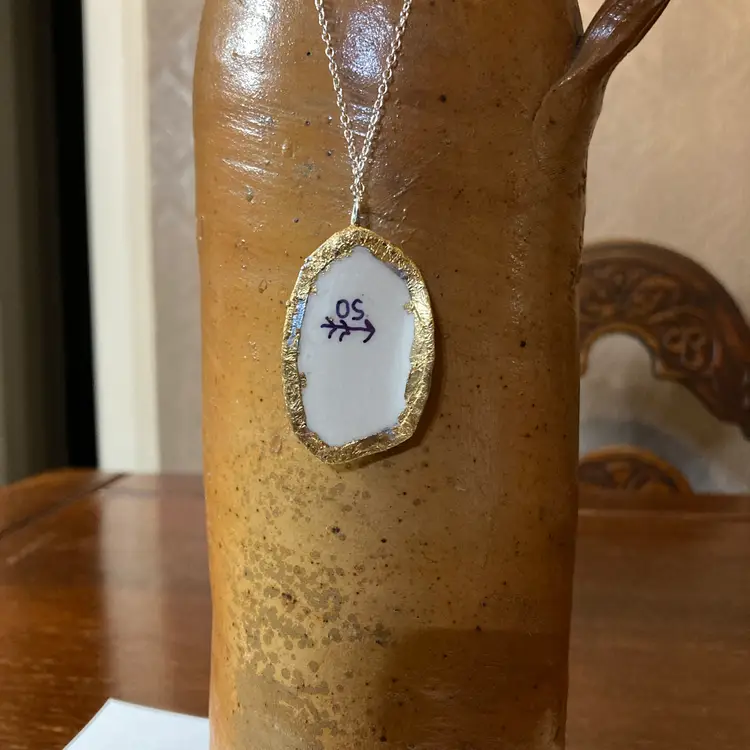 Each piece tells a story of beautiful imperfection. This handcrafted pendant transforms broken pottery shards into wearable art, celebrating the Japanese philosophy of finding beauty in what's broken. Measuring 1" x 1.75", it's the perfect size for everyday wear or layering. This pendant is one-of-a-kind—no two are exactly alike. Pair it with your favorite chain and let your necklace spark conversations about embracing uniqueness and sustainable craftsmanship.