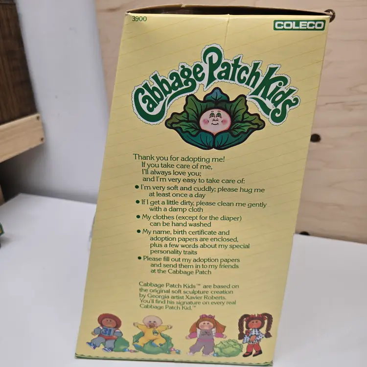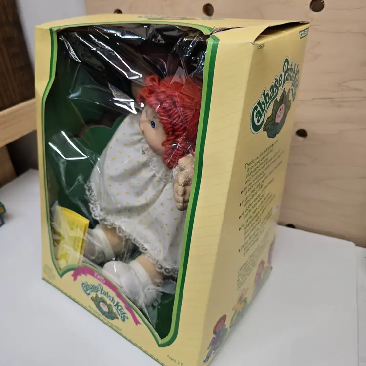 Vintage Cabbage Patch Kids Doll. 1985. Red Hair Braids & Blue Eyes. Patricia Elenore is name on Papers. **PLEASE NOTE that the BOX HAS DAMAGE. One corner is torn (see photos) and the cellophane has come loose. Otherwise in very good condition. Smoke free dog friendly home.