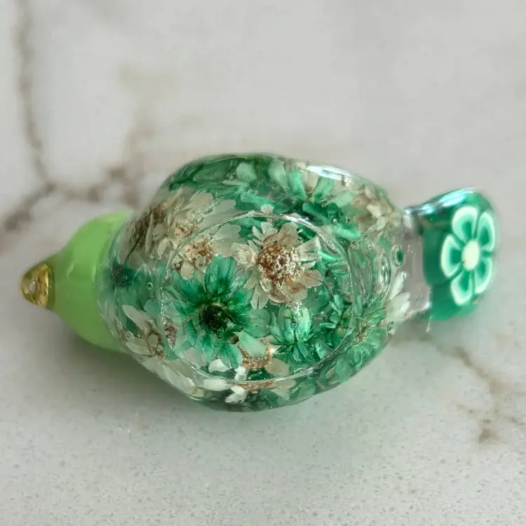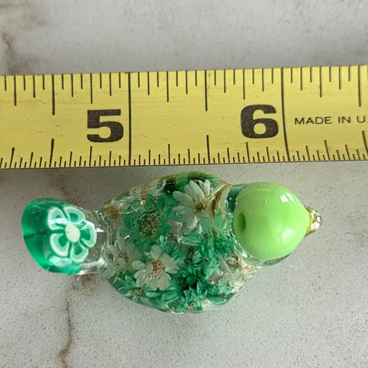 These tiny little birds are handmade from UV resin and bits of baubles and bling from my craft jewelry pile or whatever else I can throw in. No two are alike.
