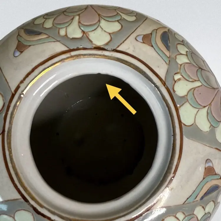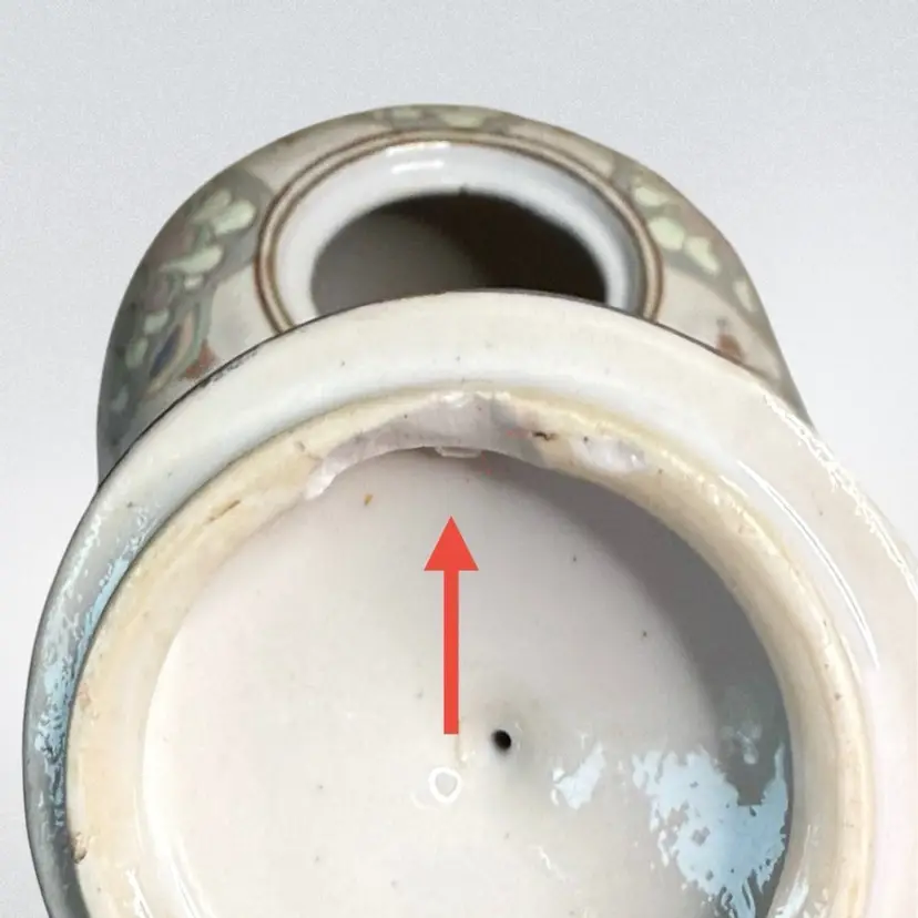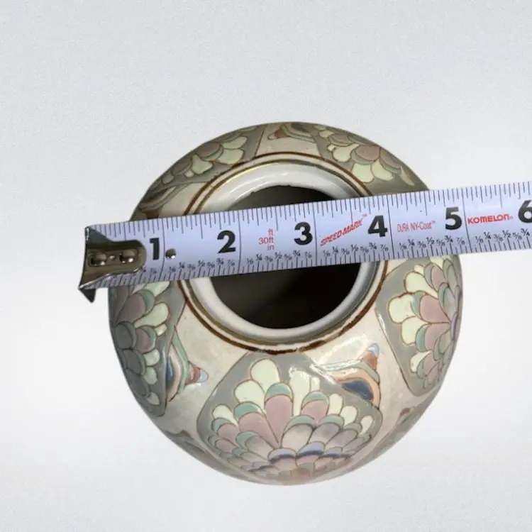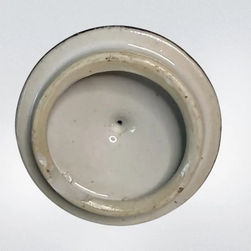 Condition: Chip on the inside edge of lid and small chip inside rim of jar. No other condition issues noted. Measurements are approximate, please see pictures for condition and measurements as they are a part of the description. S1-5C