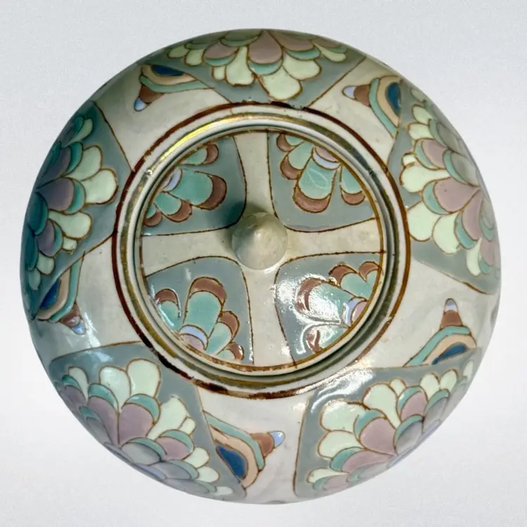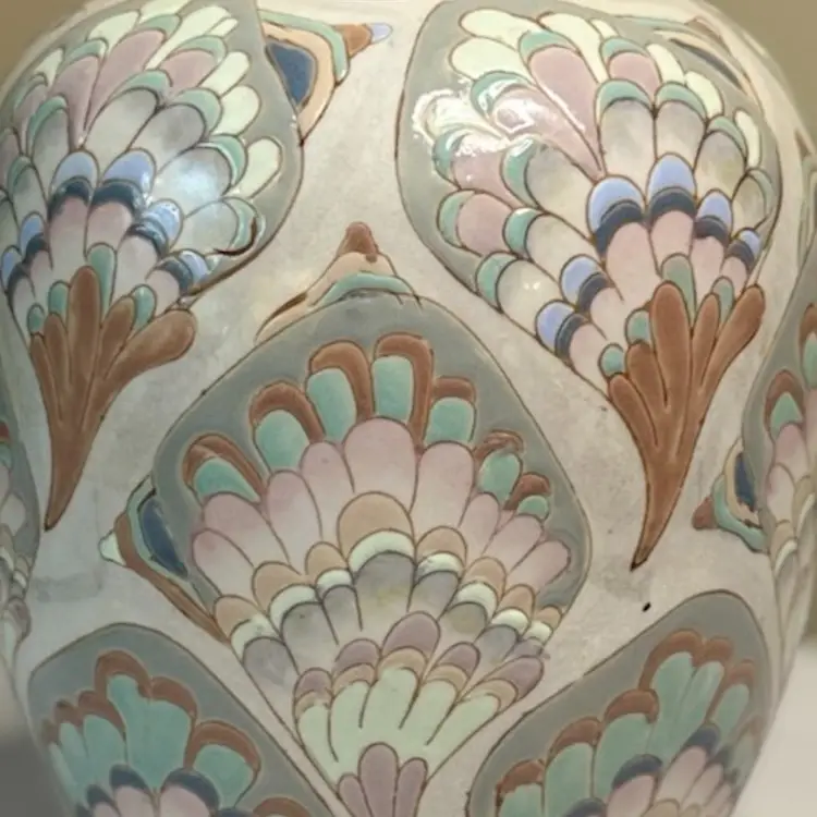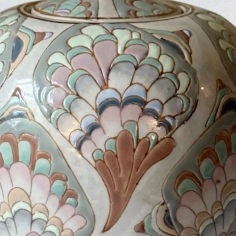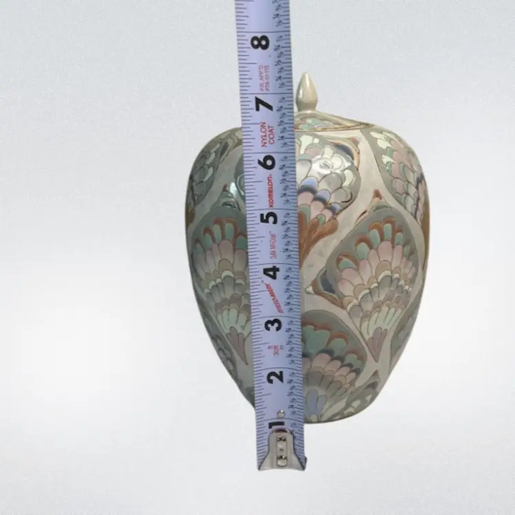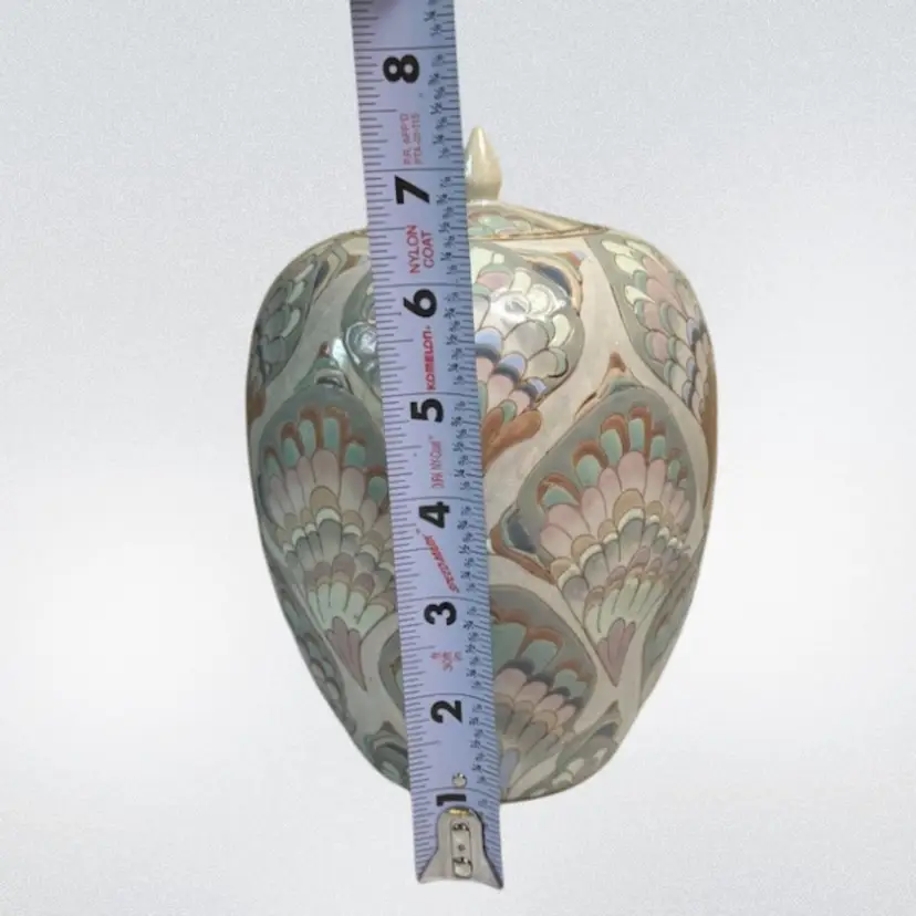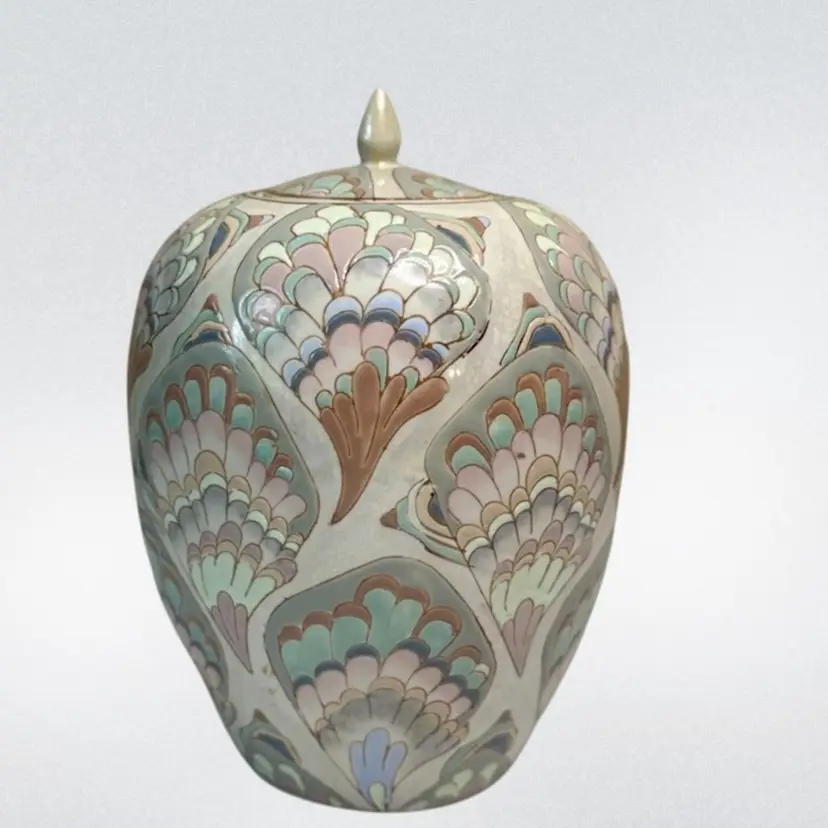 Ceramic feathered pastel 1980’s ginger jar.