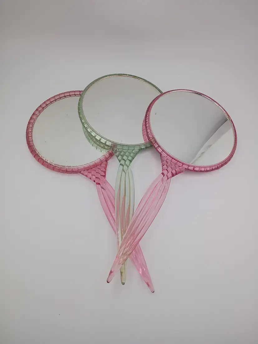 Choice of three fantastic vintage acrylic hand mirrors -- in pink or green. They are in excellent condition with no chips or cracks.