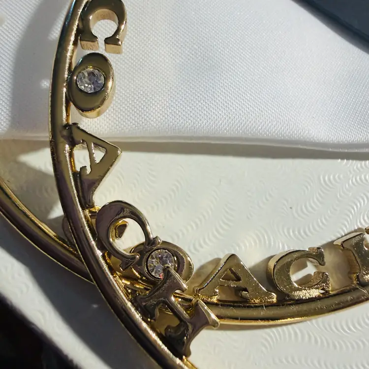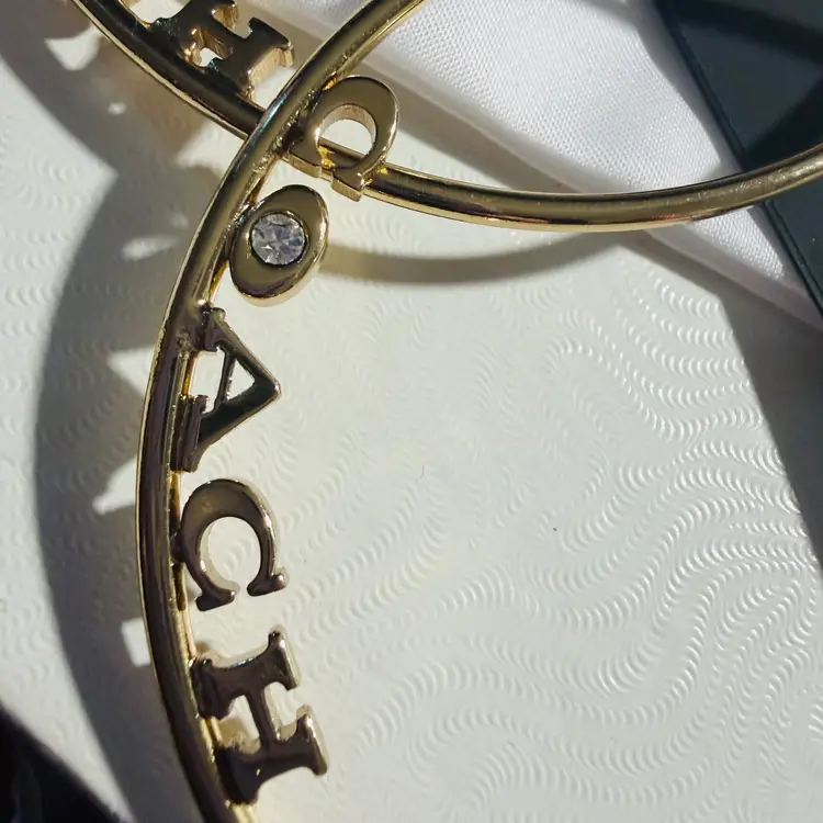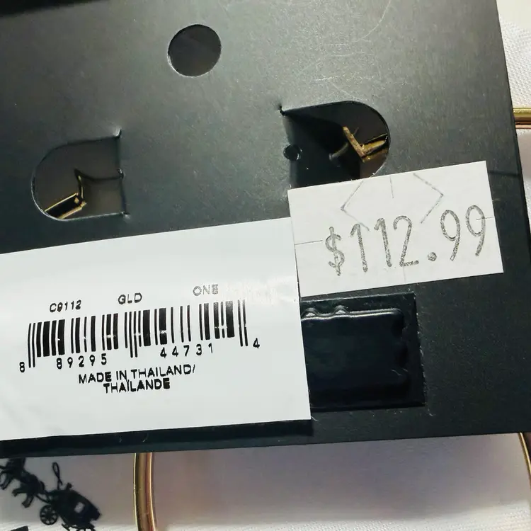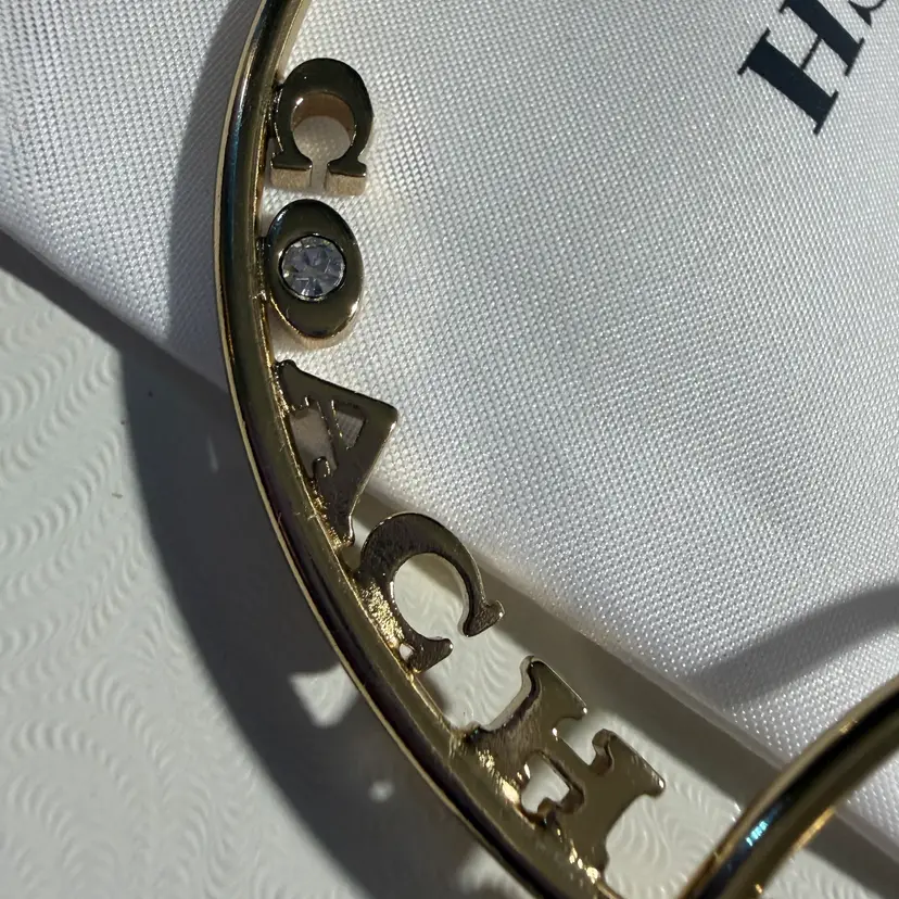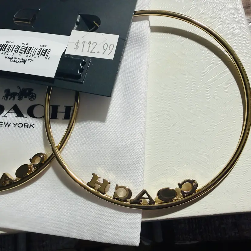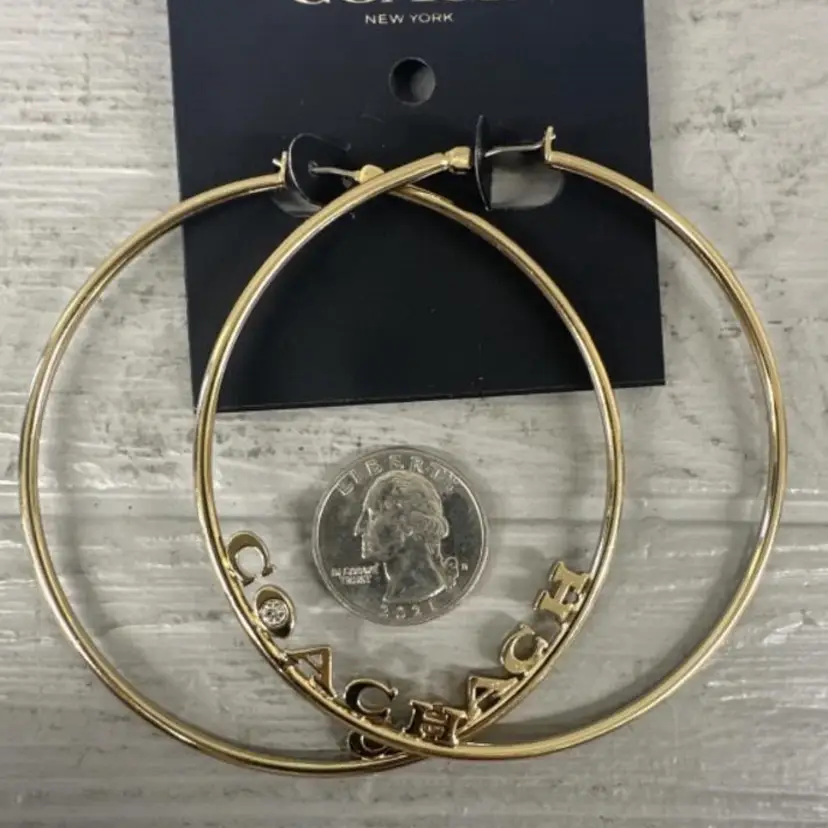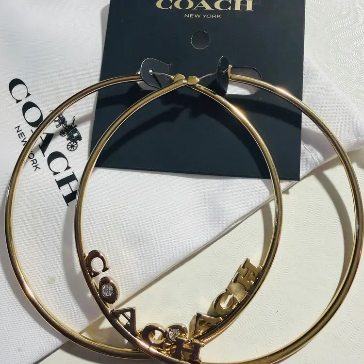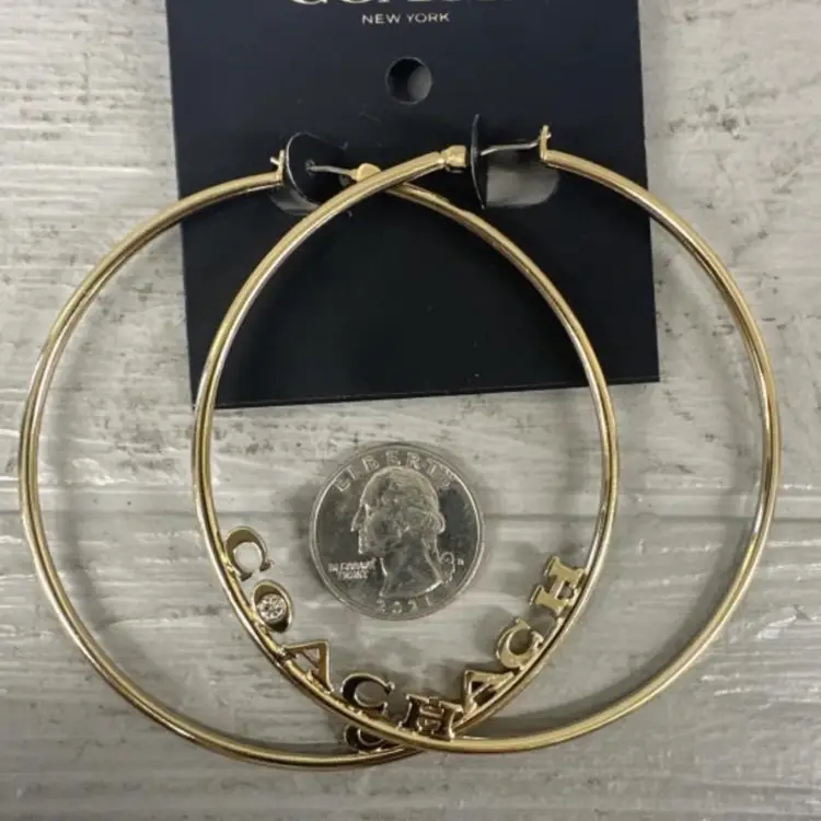 These are huge 3” gold tone hoops with a pace crystal in the O - NWT - still on original card. They meet all the criteria I could find indicating they are authentic. The only sold comp I could find was for $124
