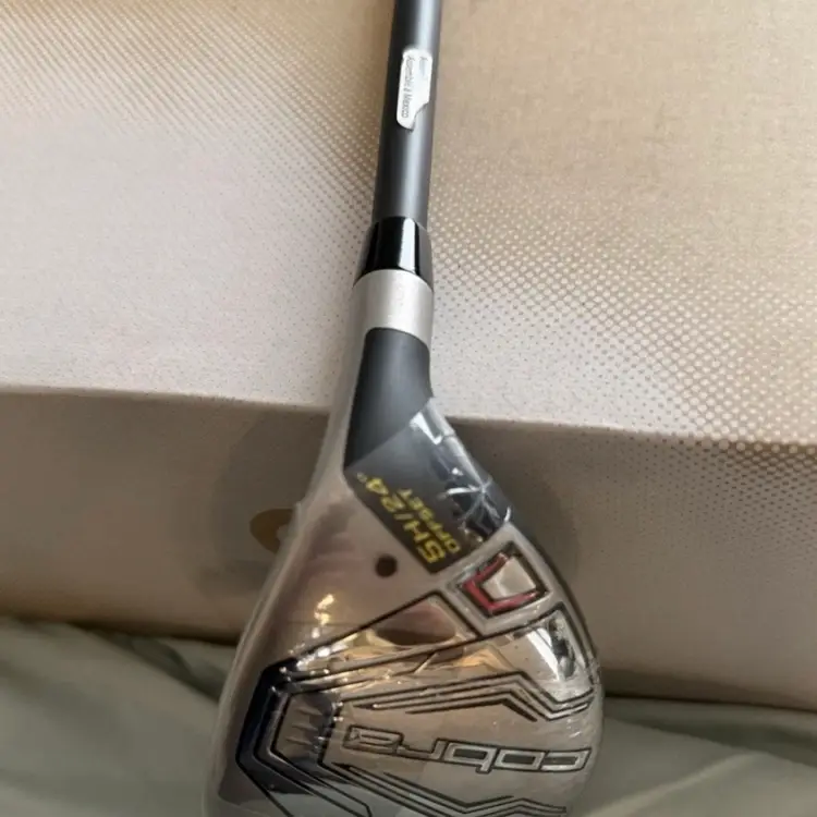 The Cobra Air-X 5-Hybrid RH 24° Offset is a men's right-handed golf club with a regular flex graphite shaft. It features a 24° loft and belongs to the Air-X model line by Cobra. The club is a 5 hybrid, designed for optimized performance on the golf course. The vibrant red color adds a pop of color to your golf swing while the graphite shaft provides lightweight yet sturdy feel to the club, making it ideal for players looking for a reliable and high-quality hybrid club for their game.