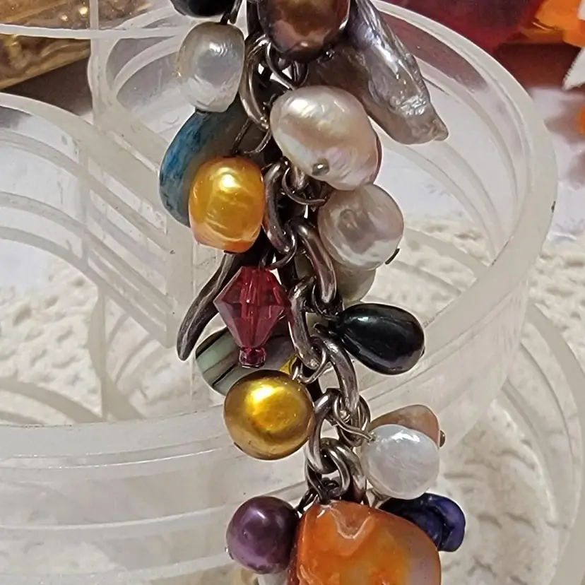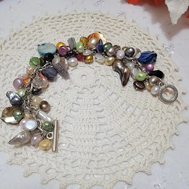 Colorful Baroque Pearl And Glass Bead Charm Bracelet