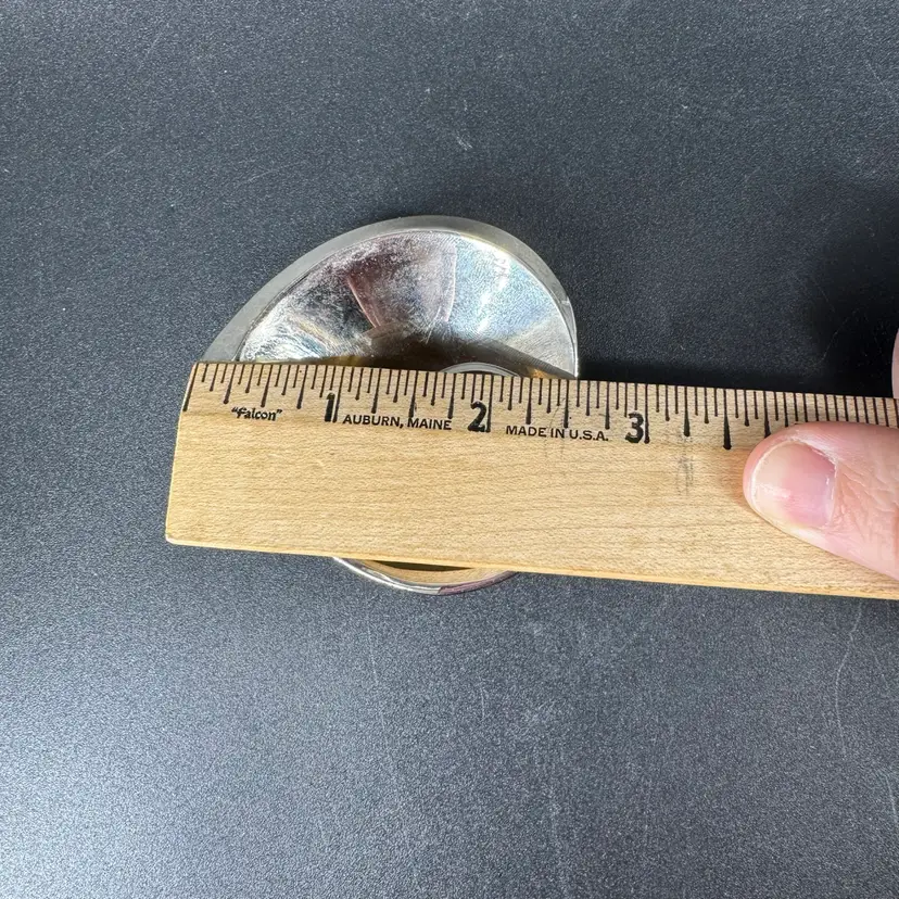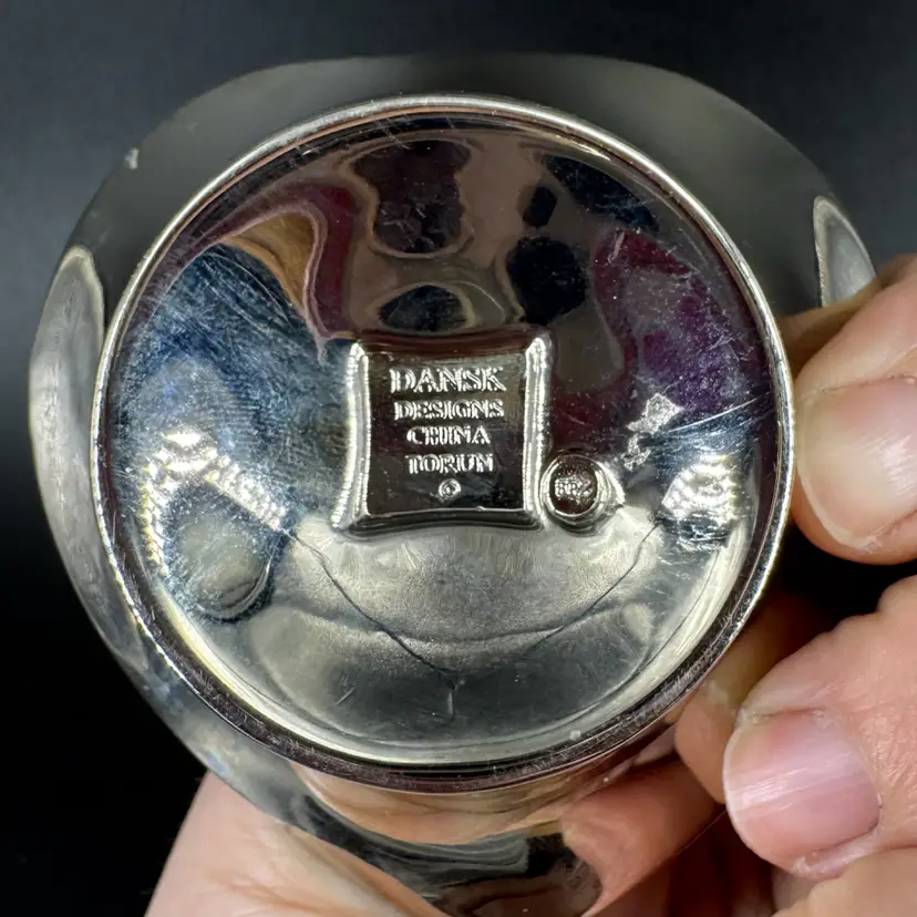 Width is approximately 2.5” No chips or cracks Does have little scratches Is marked “Dansk Design China Torun”