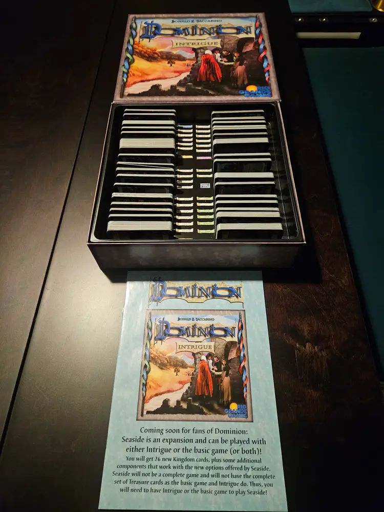 Players: 2-4 Playtime: 30 minutes Age: 8+ Designer: Donald X. Vaccarino Publisher: Rio Grande Games Mechanics: Deck, Bag, and Pool Building, Delayed Purchase, Hand Management, Open Drafting, Variable Set Up Theme: Medieval Card Game