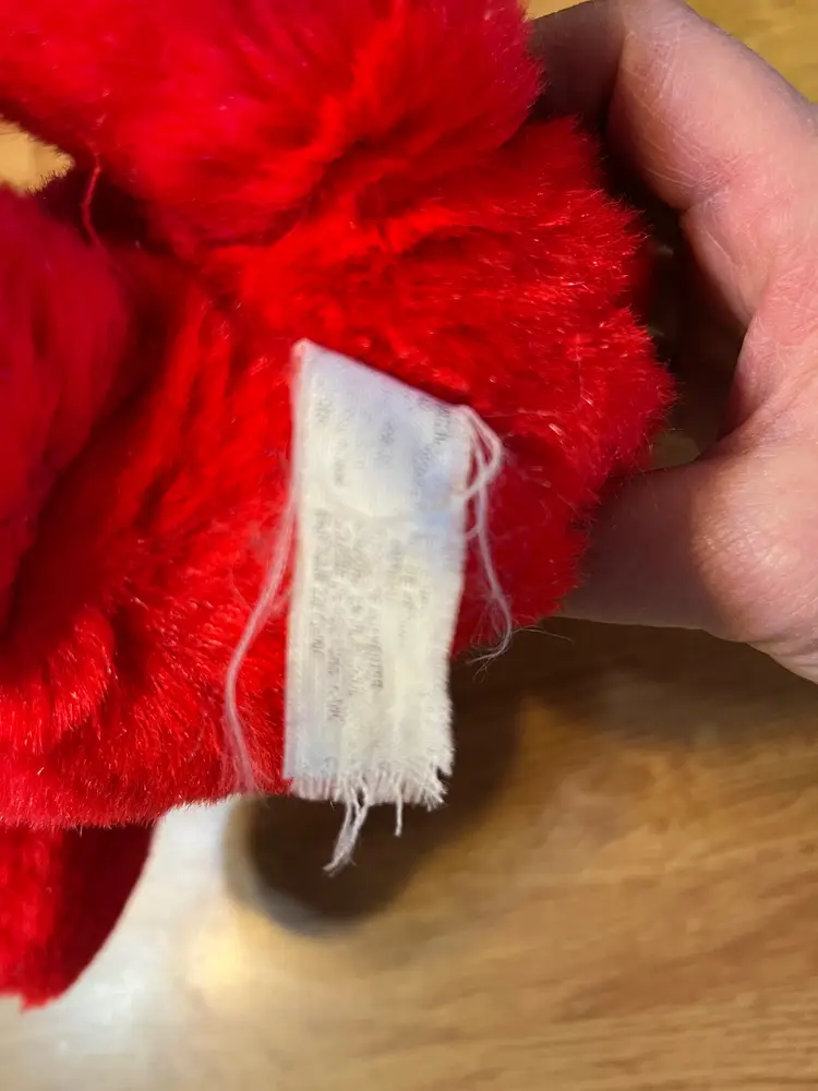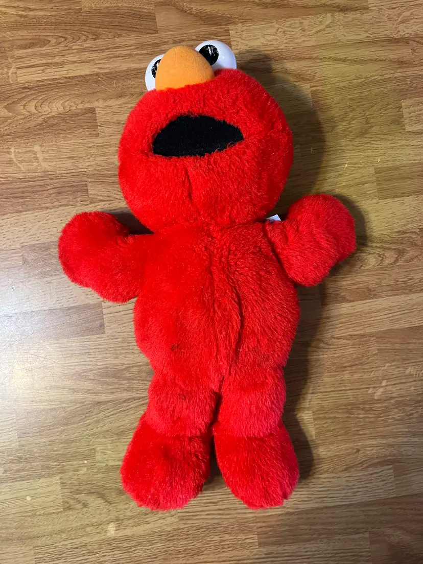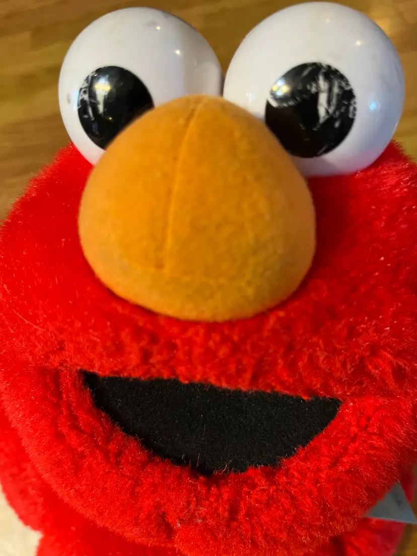 17” Elmo plush pre owned. Believed to be vintage due to tag and where it came from. Looks to be in good condition other than just a couple small light spots.