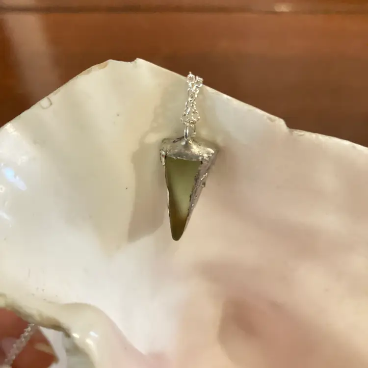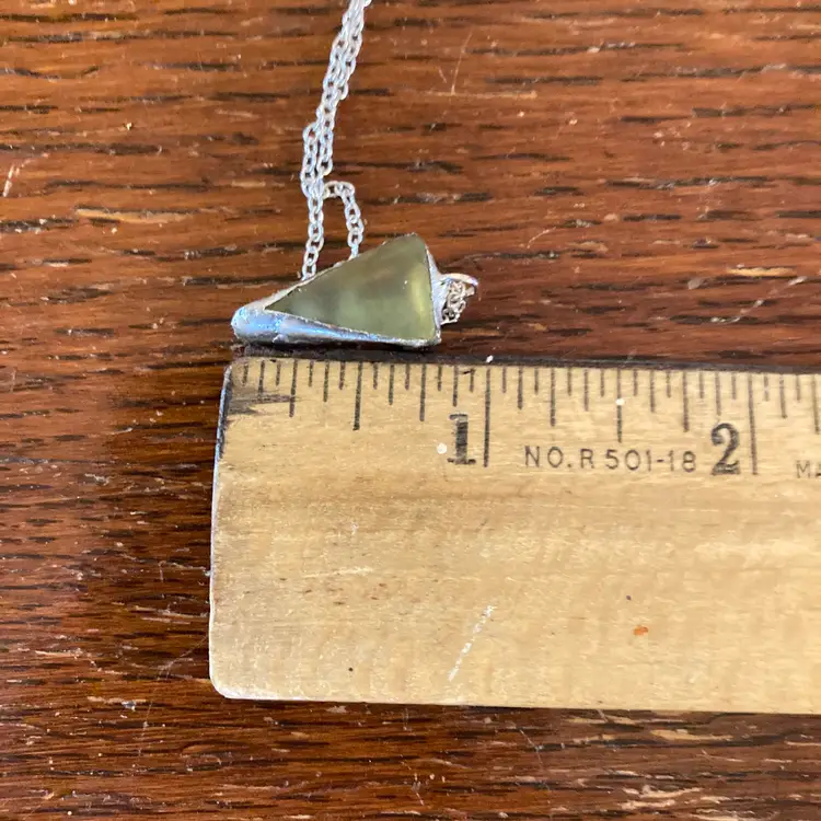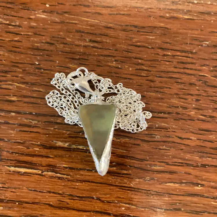 This striking pendant captures the magic of vintage uranium glass with its luminous green hue that glows under UV light. This piece is handcrafted by artisans who understand the allure of this rare material—perfect for collectors, jewelry enthusiasts, and anyone who loves a conversation starter. At 3/8" × 7/8", it's the ideal size for layering or wearing solo. Whether you're drawn to its retro charm, scientific intrigue, or simply its mesmerizing glow-in-the-dark appeal, this pendant brings a touch of glowing wonder to your everyday style.