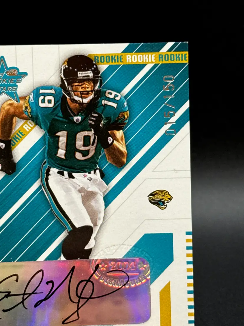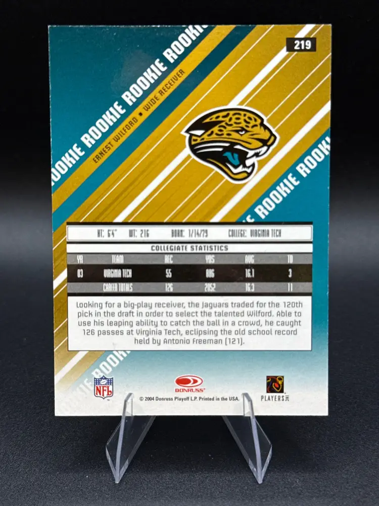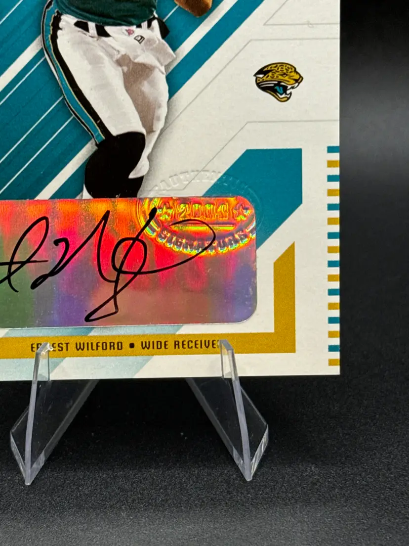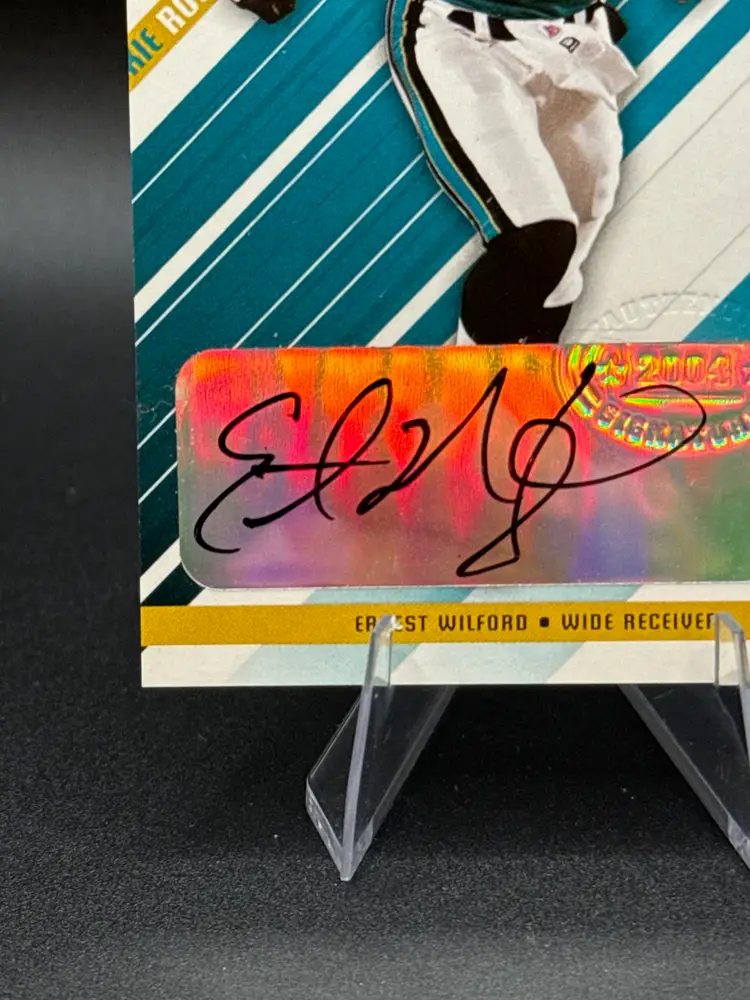 This is an autographed 2004 Donruss Playoff Rookies & Stars Ernest Wilford card numbered to 150. The card is in NRMT condition or better.