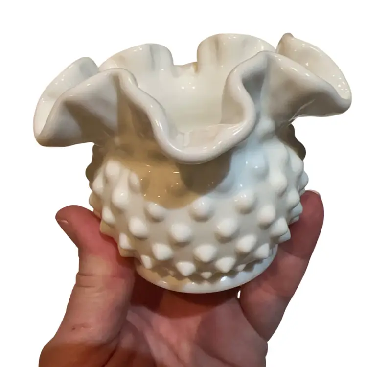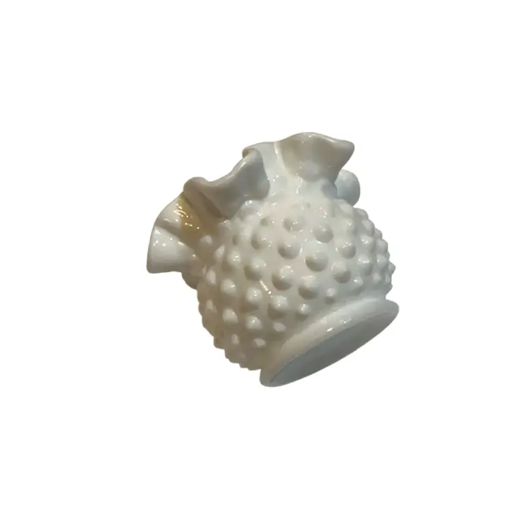 Fenton Milk Glass Pre Logo Diamond Point Ruffled Vase Chunky Vintage