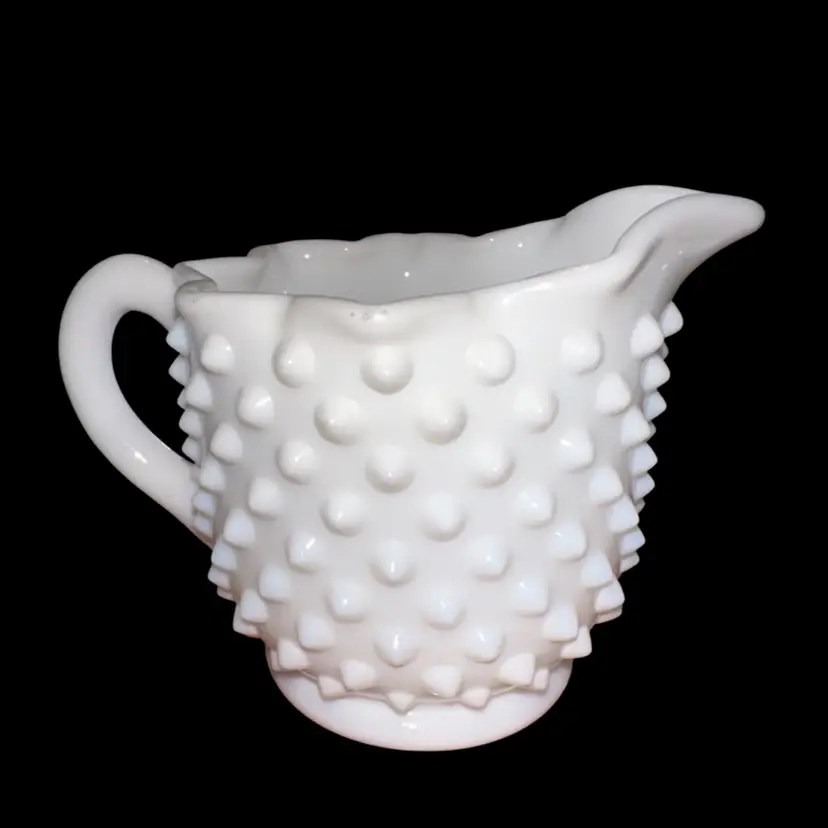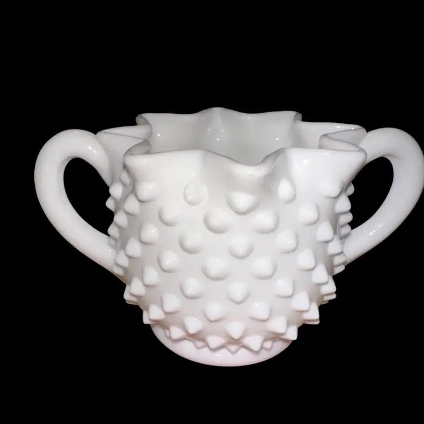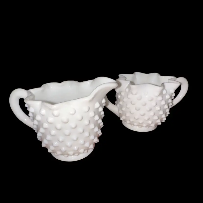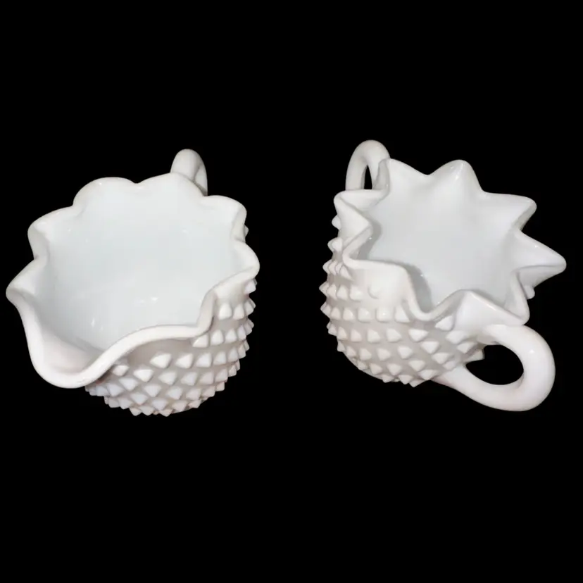 Fenton MilkGlass Hobnail Cream & Sugar Crimped Star Shape