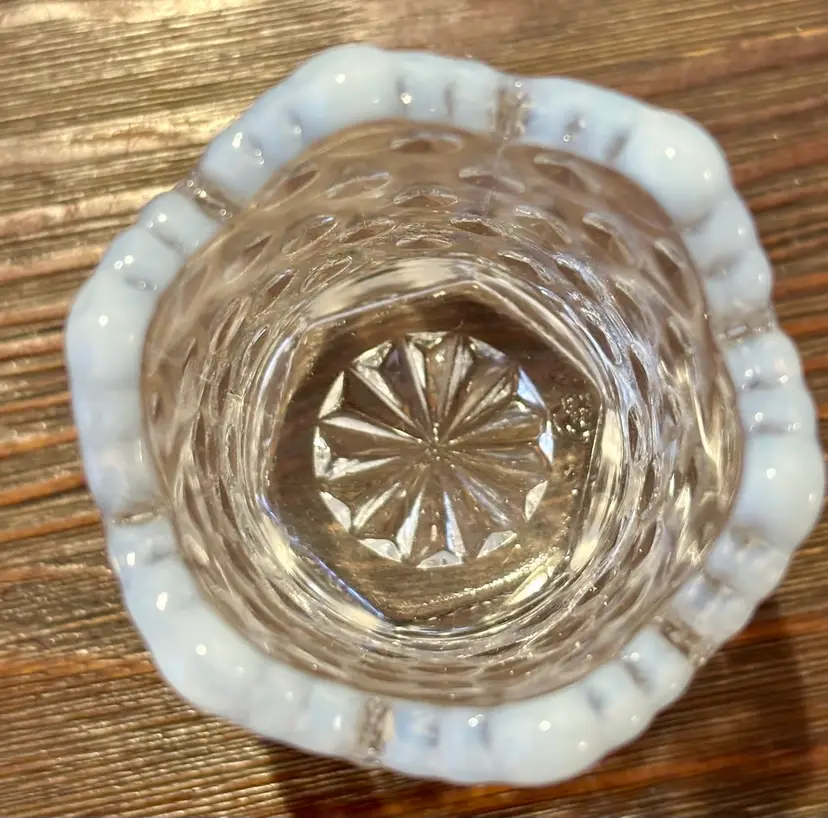 Fenton Opalescent Hobnail Vintage Glass Scalloped Edge Toothpick Holder 3”