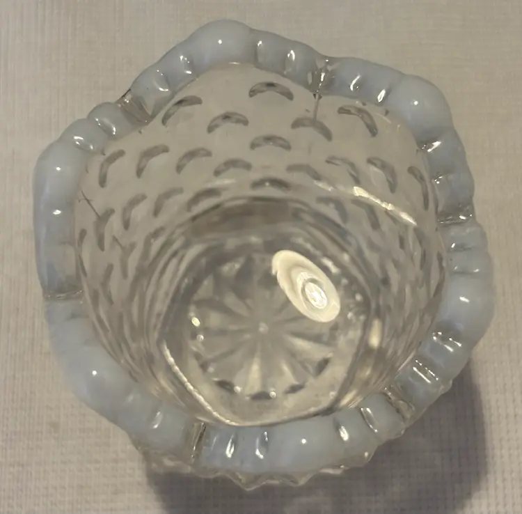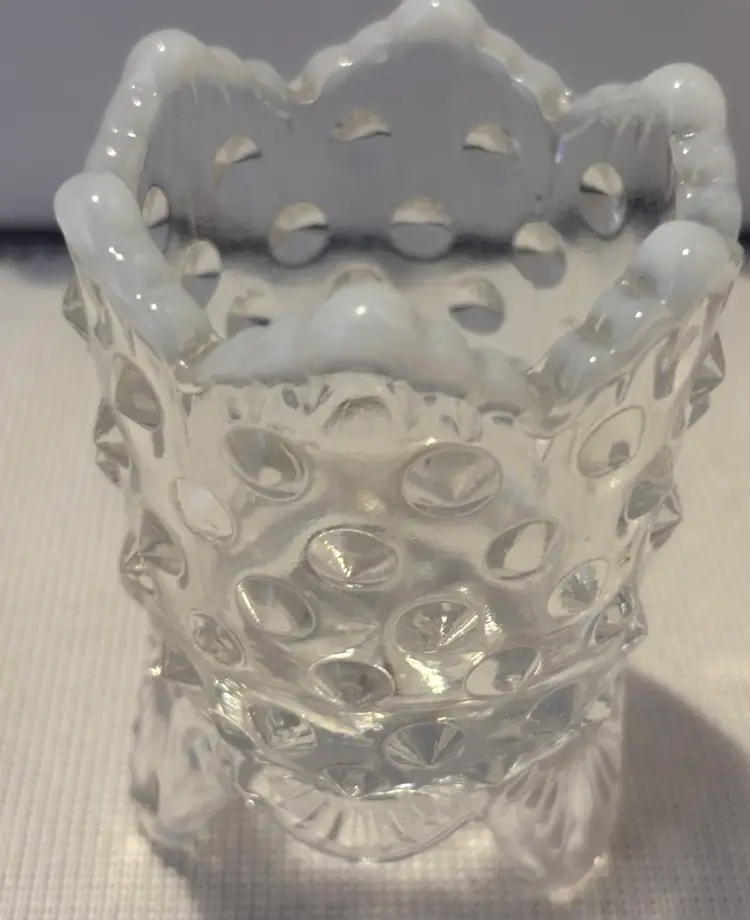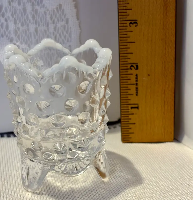 Vintage Fenton Opalescent Hobnail Glass Scalloped Edge Footed Toothpick Holder No chips or cracks 3”