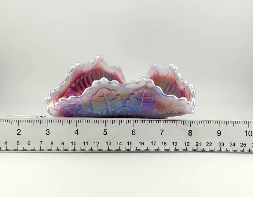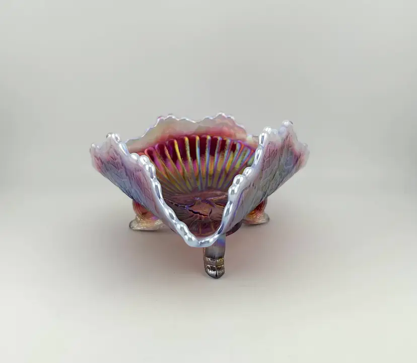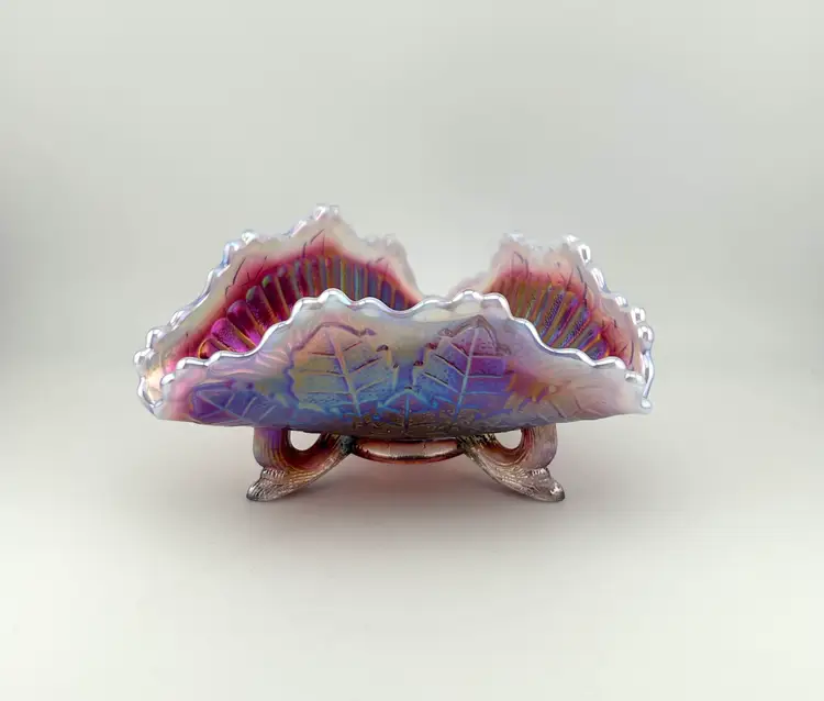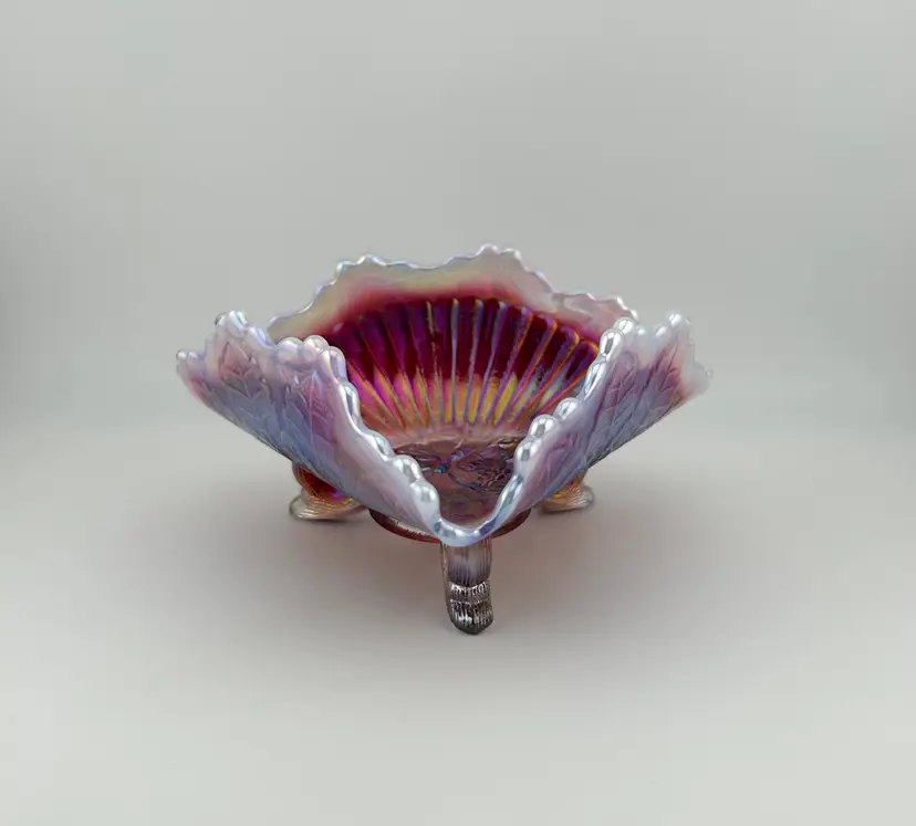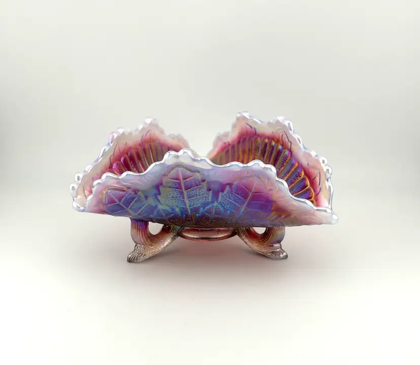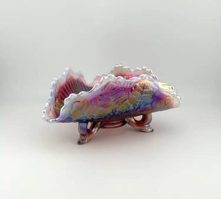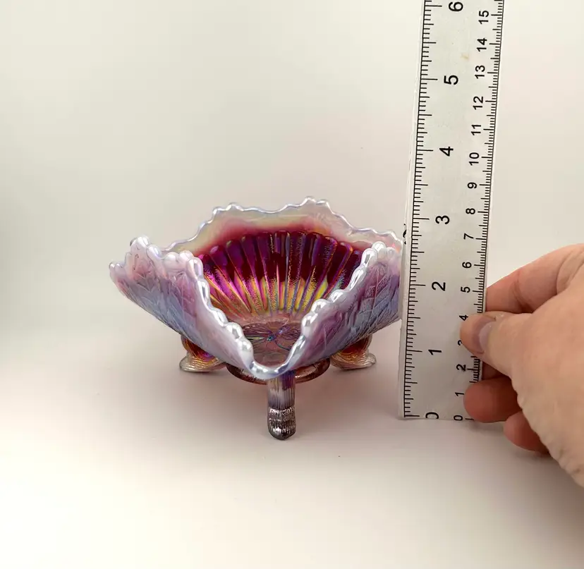 Fenton Plum Opalescent Butterfly Glass Nappy Dish 5.5”x 5.5”x 2.75”