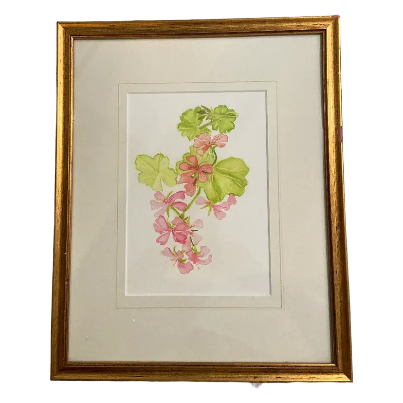Framed & Matted 2001 Ltd Edition Watercolor Print of Geraniums & Leaves, #4 of 20, Frame: 11.5 x14.5", Print: 5.75" x 8.25"