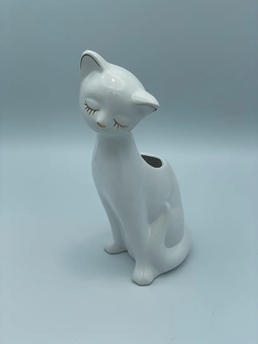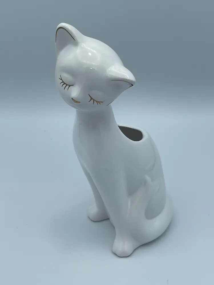 Hallmark Signature Collection Porcelain White Cat With Gold Accents.