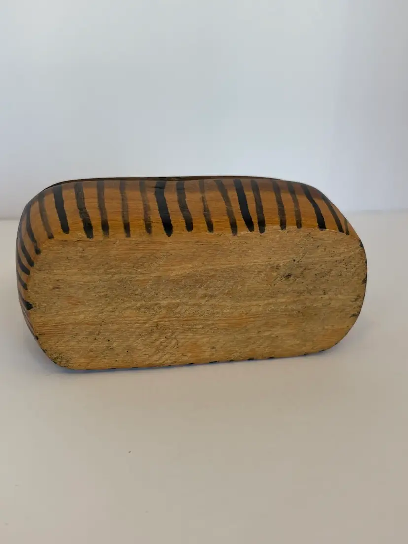 Hand carved zebra box, numbered inside. Base size is approximately 2 inches by 5 inches.
