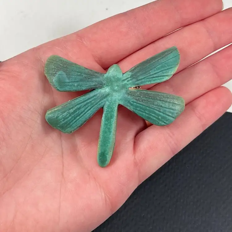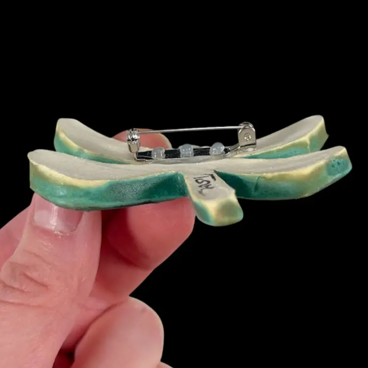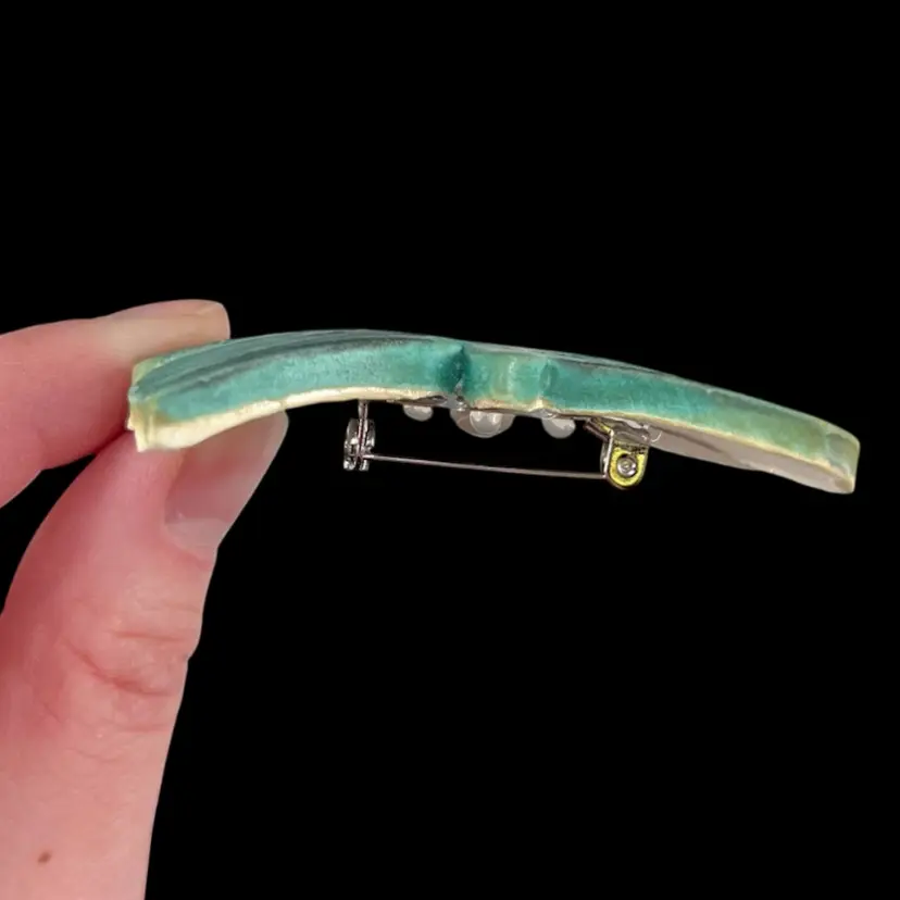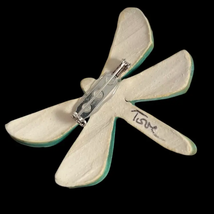 Brooch is approximately 2.5” x 2.5” x 0.5”. No chips or cracks. Signed by the artist and in the original card.